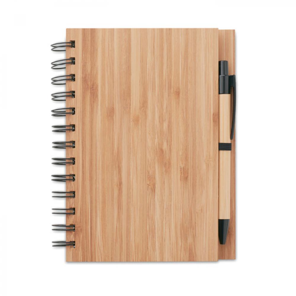 Блокнот в обложке из бамбука с 70 страницами из переработанной бумаги. Имеет бамбуковую ручку с кончиком и клипсой из ABS FSC®-certified | FSC 100%, N5.7, FSC-C213206
