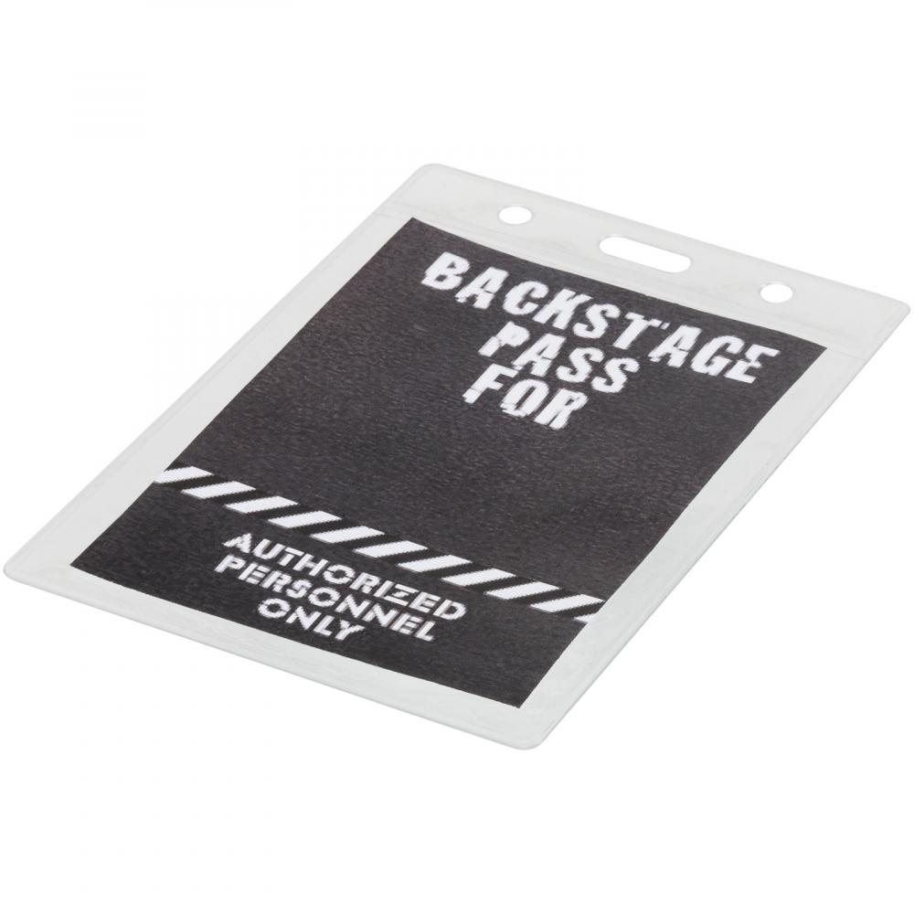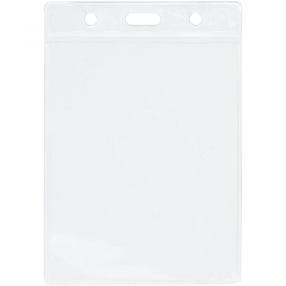 Держатель для бейджа с вставкой на задней стороне и отверстием сверху для крепления к шнурку или роликовому зажиму. Подходит для карты размером 9,4 x 8,3 см.
