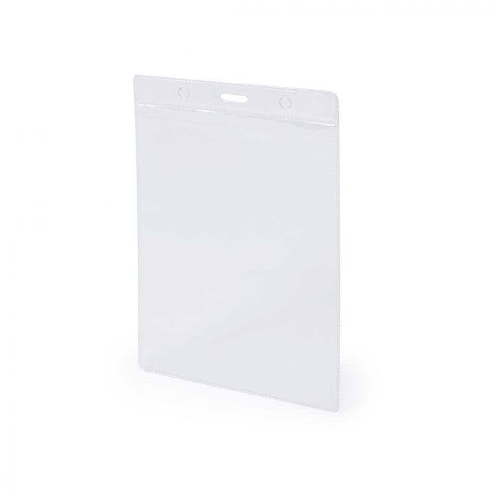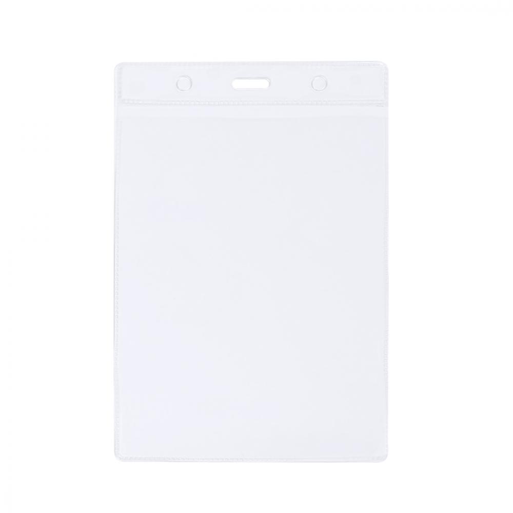 Характеристики Вертикальный PVC идентификатор. Практичный держатель значка с усиленным верхом и перфорацией для центральной и боковой фиксации. PVC