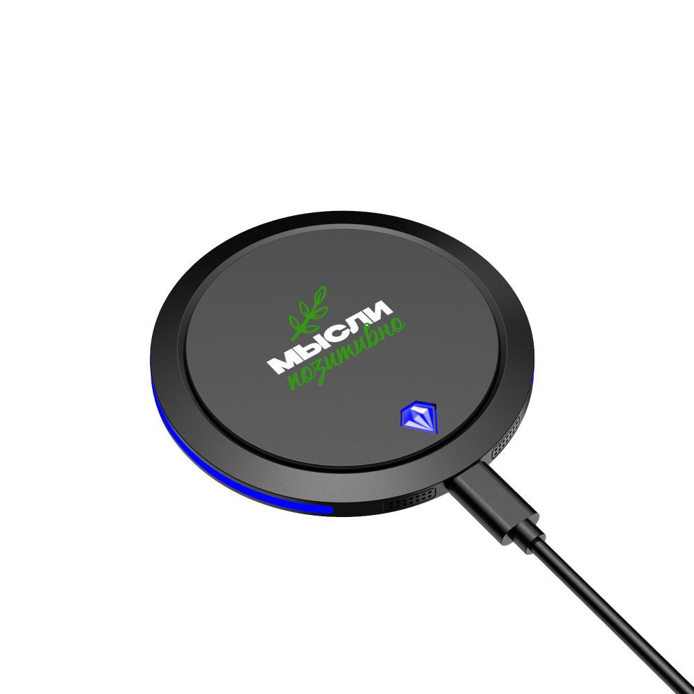 Беспроводное зардяное устройство с боковой подстветкой и элегантным кристалом на лицевой стороне.