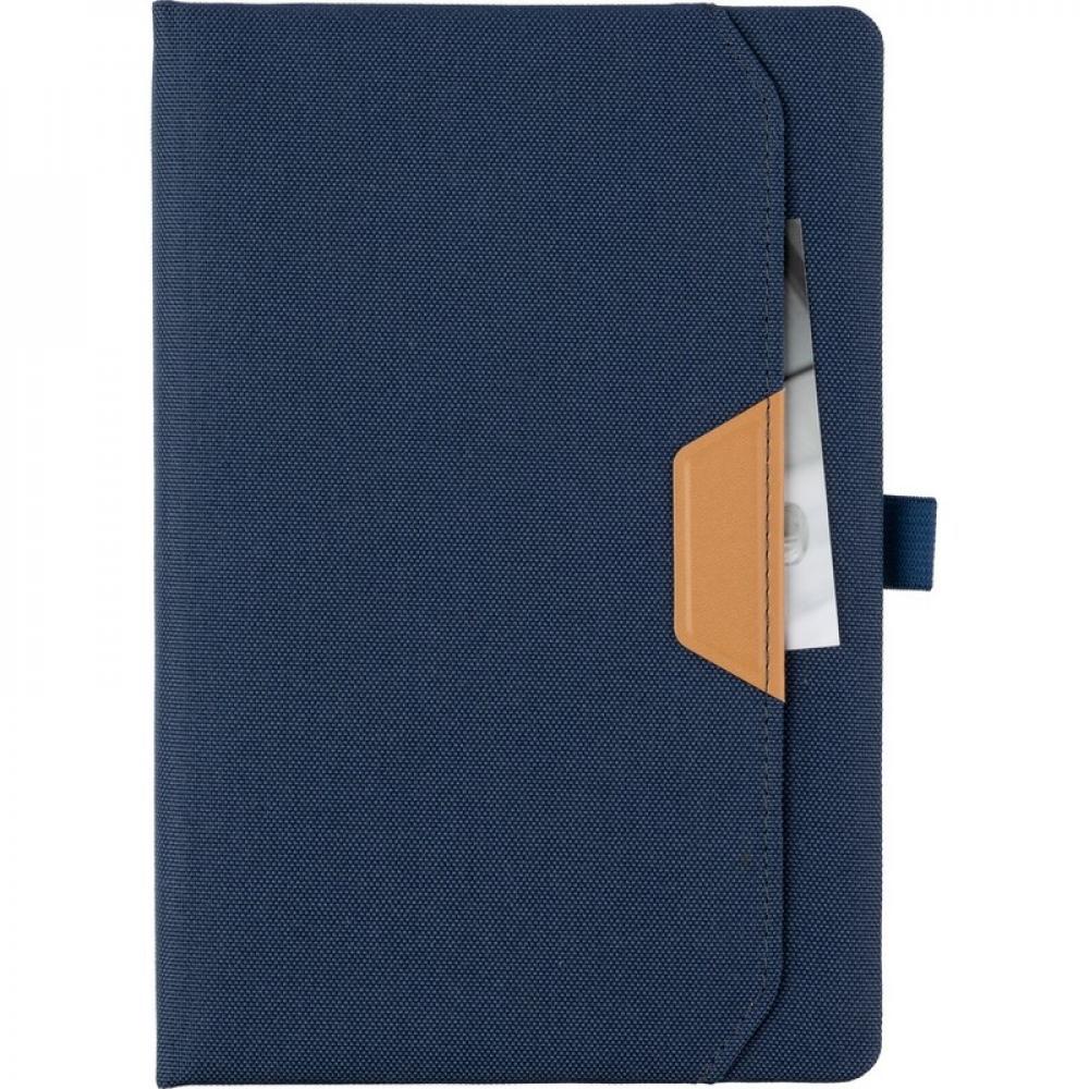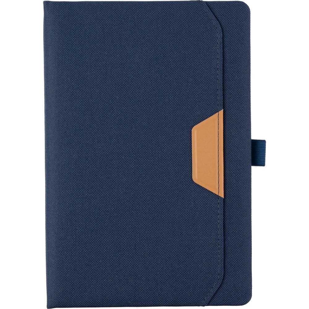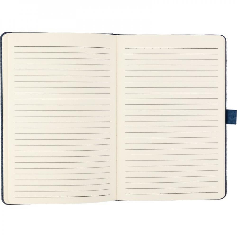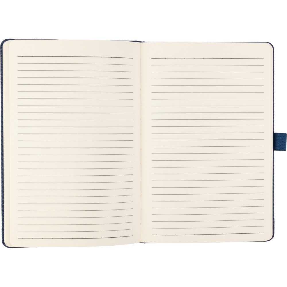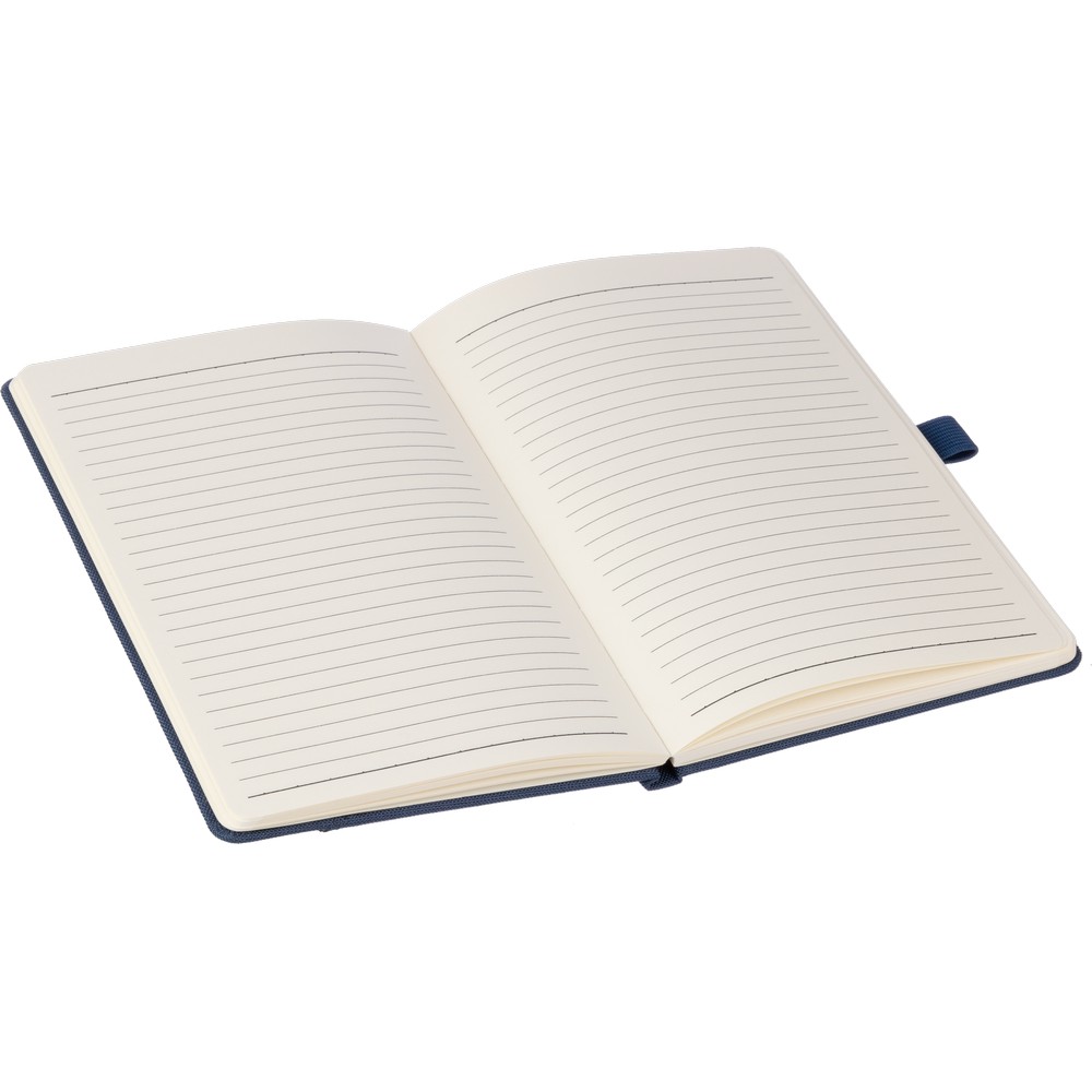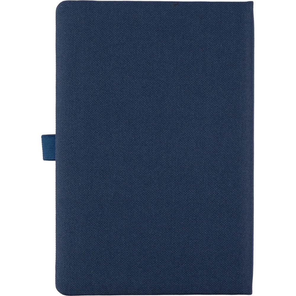 Блокнот формата А5 с 100 линованными страницами, помещается в школьный рюкзак, упакован в индивидуальную упаковку из ткани, изготовлен из RPET.