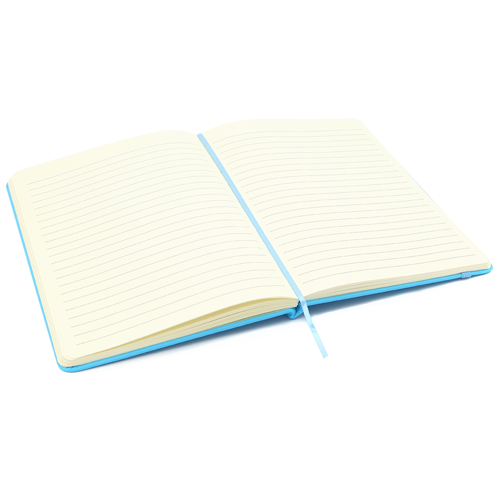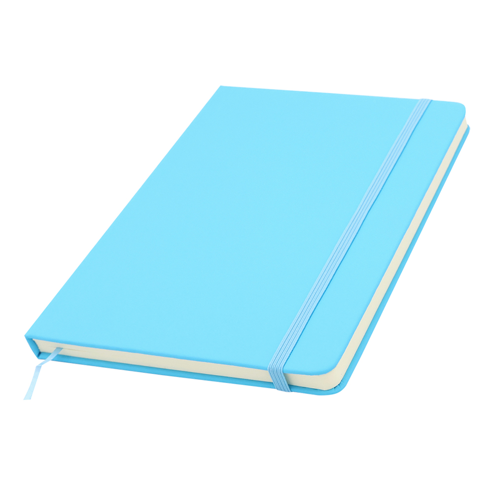 Блокнот формата А5 с твердым покрытием из PU-материала с имитацией рисунка кожи, с эластичной застежкой для закрытия и текстильной закладкой в цвет блокнота, 192 страницы, плотность 70г/м, страницы с черными линиями. Цвет по PANTONE® (максимально приближен): 298 С