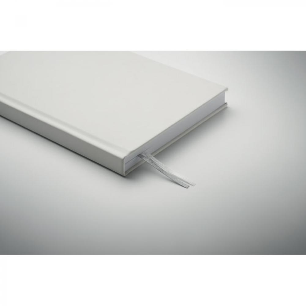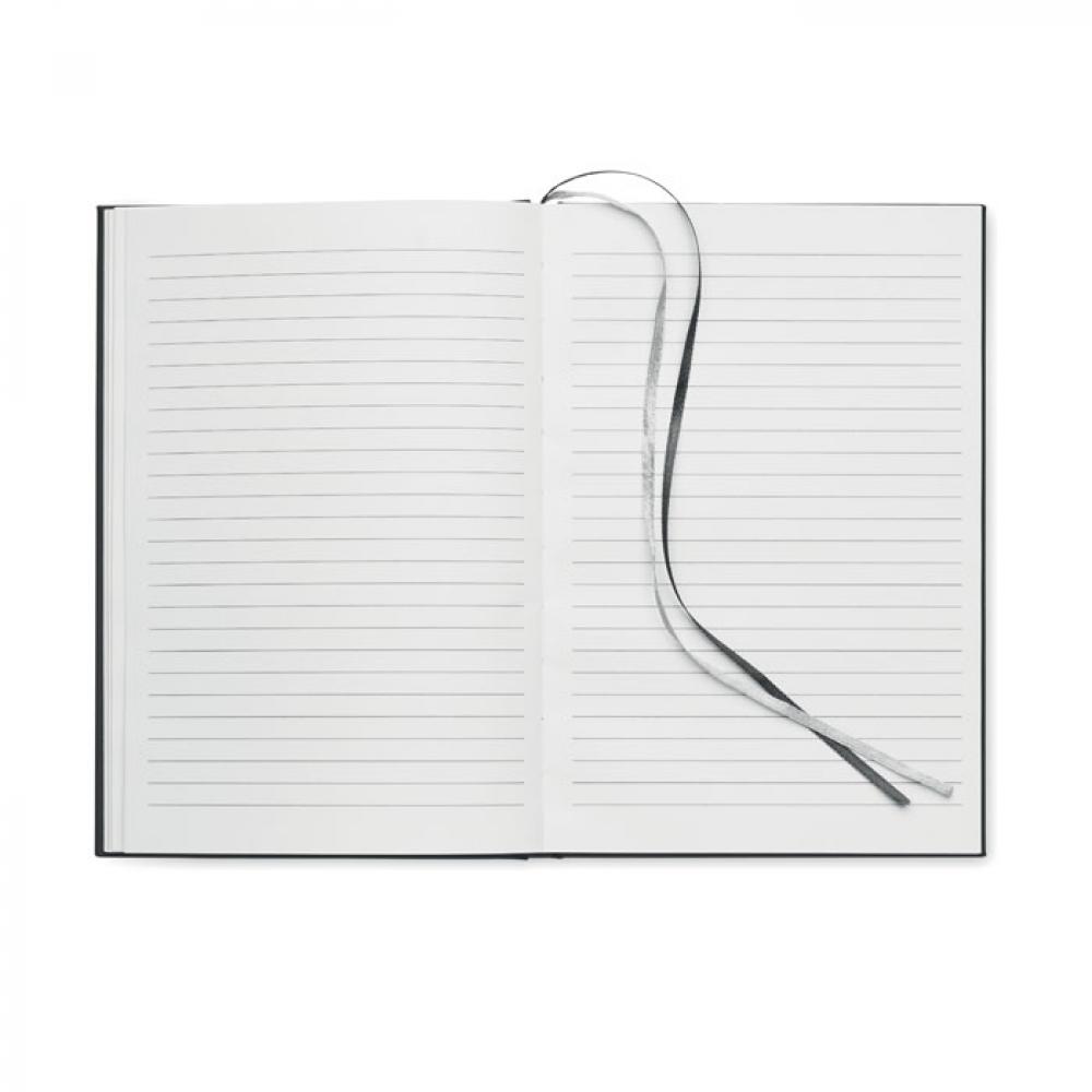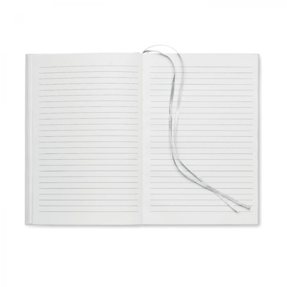 Блокнот формата А5 в обложке из переработанного полиэстера (60%) и полиуретана (40%). Переплет. 256 линованных страниц из переработанной бумаги 70 г/м² (128 листов). 2 закладки из полиэстера.
