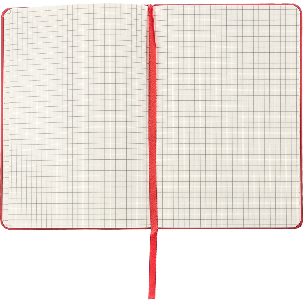 Блокнот формата А5 в твердой обложке с 80 квадратными листами, ляссе для удобного отмечания последней страницы или важных заметок, дополнительное закрытие в виде эластичной ленты под цвет обложки, изделие из бумаги, картона, резины, полиэстера.
