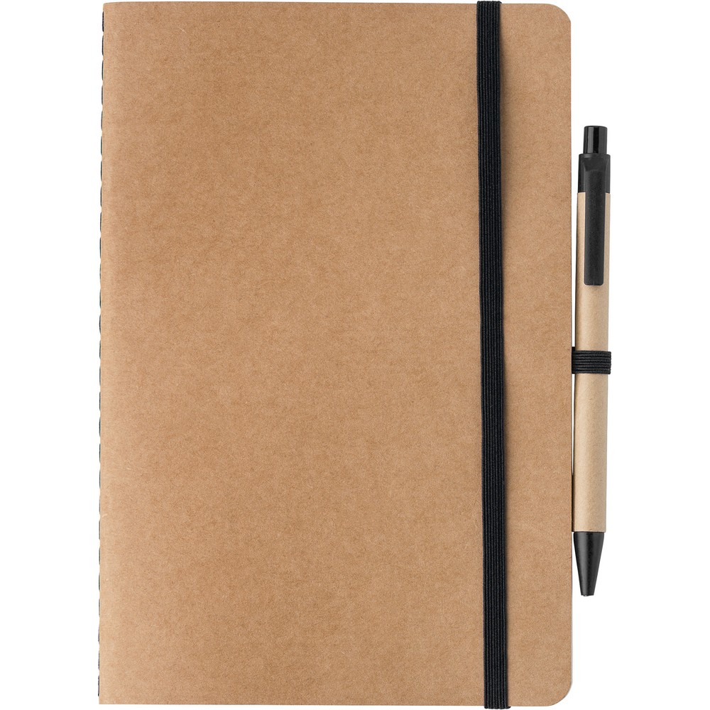 Блокнот формата А5 из переработанного картона (60 чистых листов), резинка, ручка из пшеничной соломки в комплекте