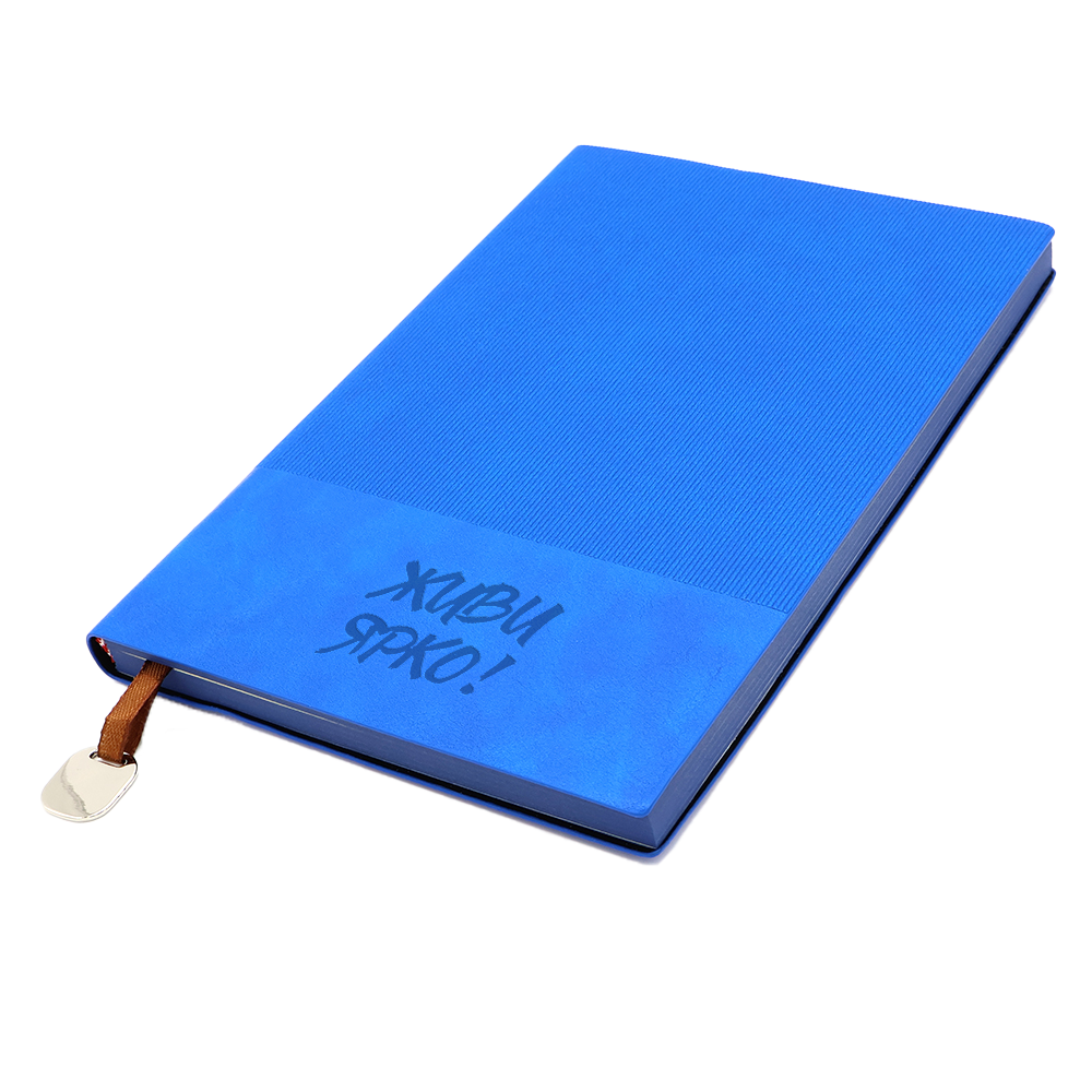 Блокнот формата А5 в гибкой обложке из искусственной кожи. Материал обложки — термополиуретан. Текстура — сверху на 2/3 ребристая, на треть снизу — гладкая для нанесения вашего логотипа.