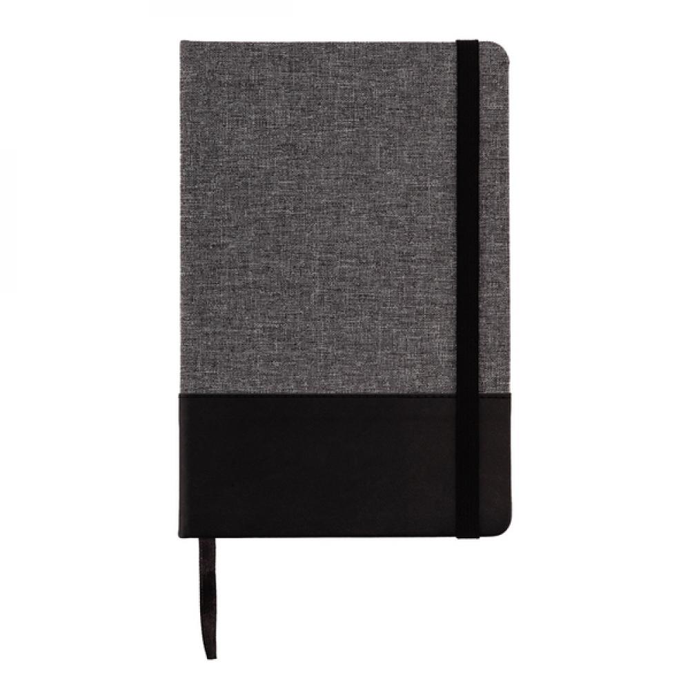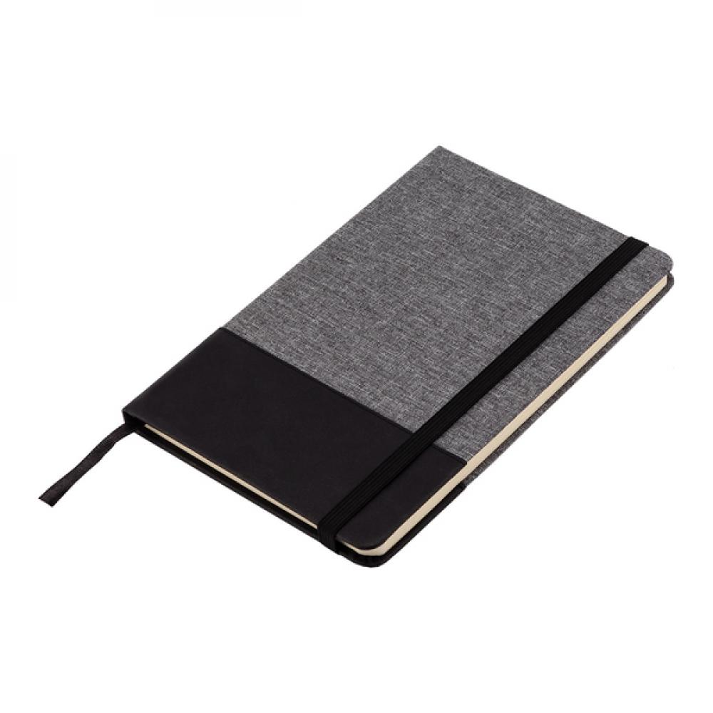 Настольный блокнот формата A5 из ткани и полиуретановой обложки. 80 листов. Закрывается на эластичную тесьму. Бумага линованная 70 г / м2. Возможна полноцветная печать.