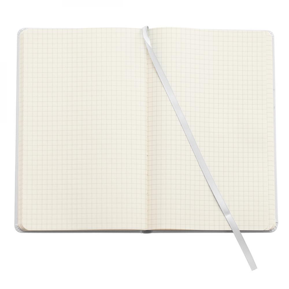 Тетрадь размером со стол в твердом переплете. Закрывается на эластичную тесьму. 70 г замшевой кремовой бумаги в квадрате. Возможна полноцветная печать (УФ).