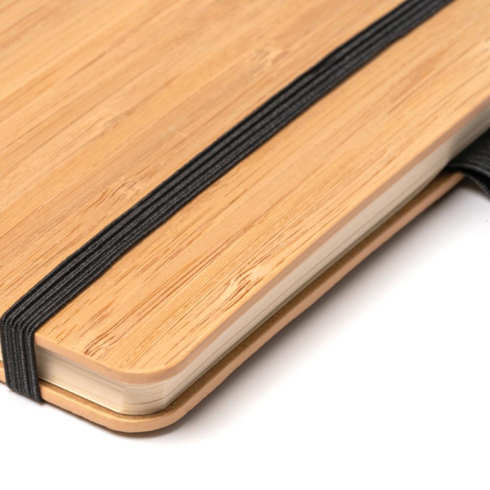Блокнот формата A5 с обложками из бамбука и пробки. Держатель для ручки. Закладка и резинка. 80 гладких листов.