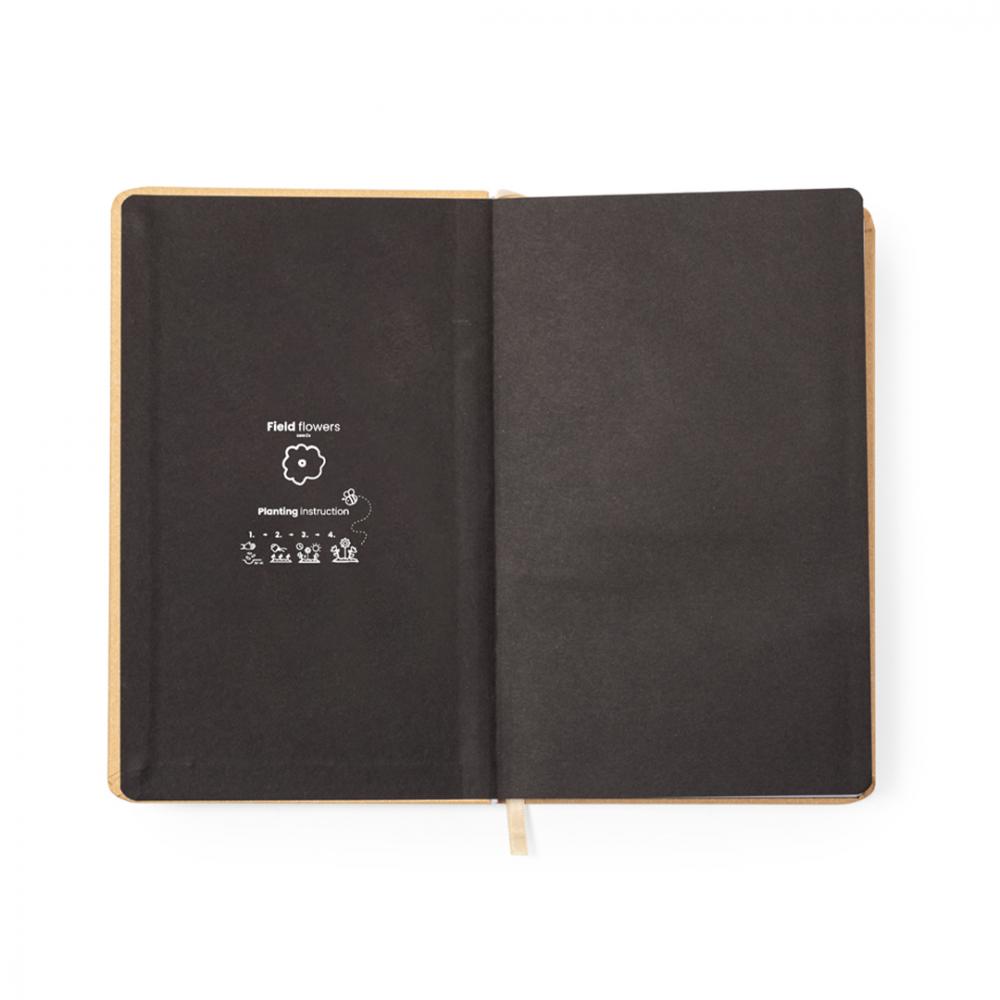 Характеристики Блокнот с обложкой из прочного переработанного картона. С жесткими обложками, ляссе и 80 одиночными линейными листами в переработанной бумаге. Кроме того, на передней обложке есть капсула семян полевых цветов различных цветов, а на задней обложке - инструкции по посадке. Переработанный картон происходит из повторного использования производственных излишков и переработки бумаги в конце ее срока службы, что делает его экологически чистым и устойчивым материалом. Жесткая обложка. 80 листов. Дикие цветы