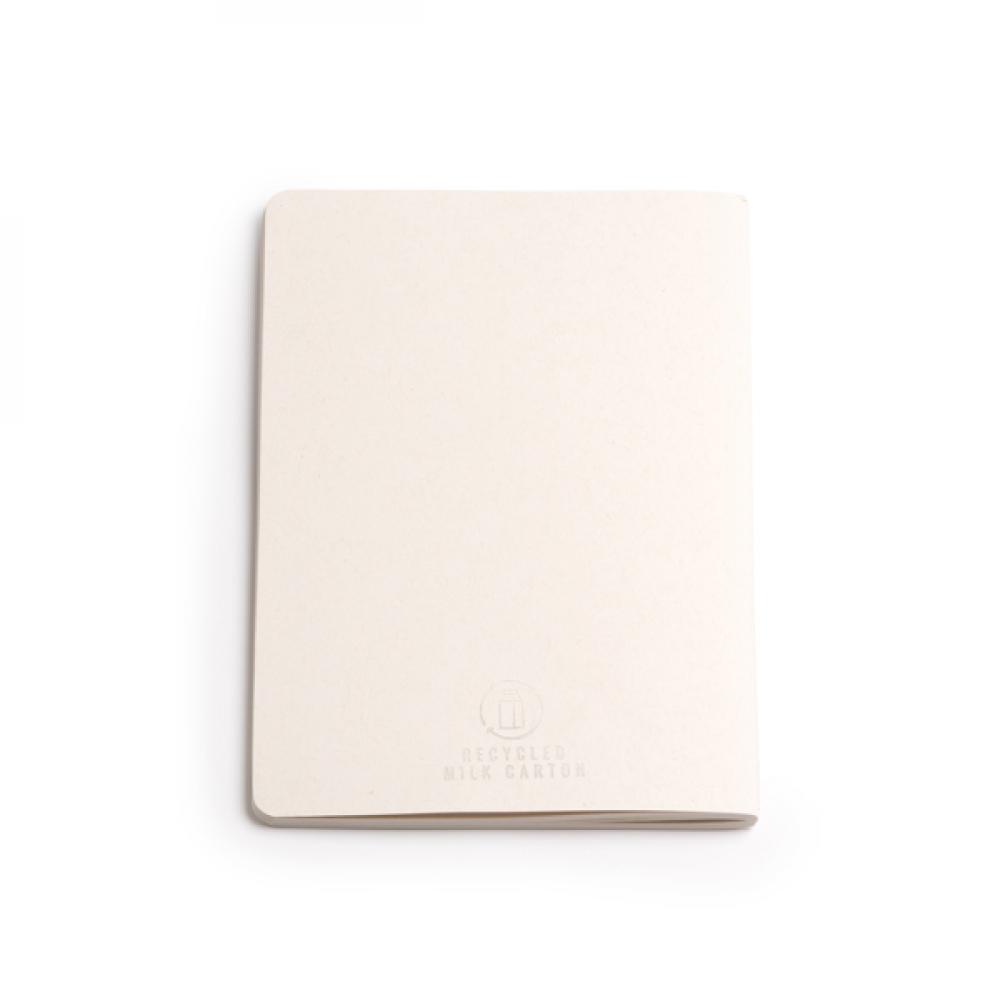Блокнот формата A5, изготовленный из переработанных молочных коробок. Мягкая обложка. 60 линейных листов.
