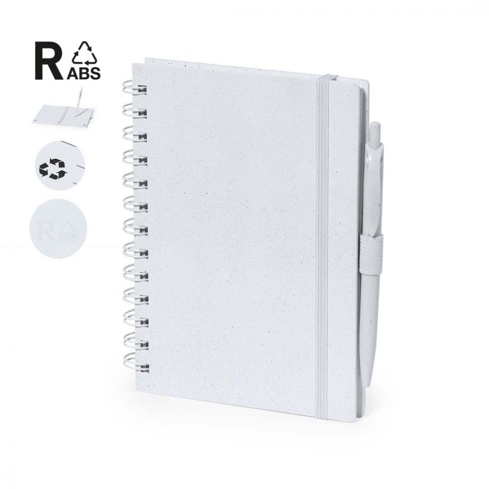 Особенности Набор из блокнота и шариковой ручки. Блокнот с жесткой обложкой и кольцевым механизмом RABS с соответствующей шариковой ручкой. Размер A5, с элегантной резинкой для закрытия, доступной в широком диапазоне цветов. Внутри 70 белых листов с одним полосатым макетом. Шариковая ручка с механизмом нажатия, изготовленная из RABS с синей чернилами, включая логотип RABS. Представлено в индивидуальной переработанной сумке. Жесткая обложка. 70 листов. В комплекте ручка RABS.