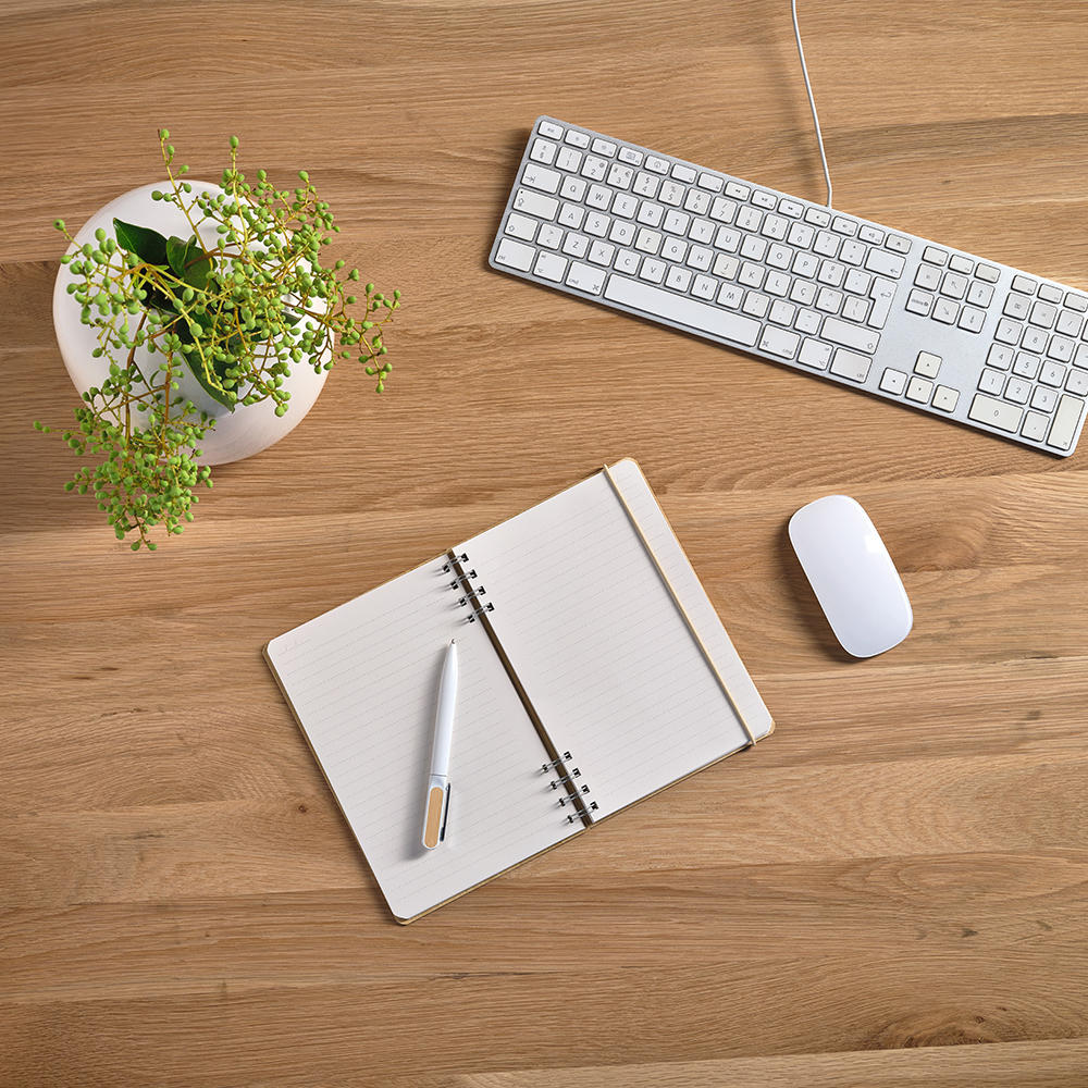 Тщательно изготовленный с обложкой из бамбука, наш блокнот формата A5 выделяется на фоне других. Он содержит 196 переработанных точечных страниц плотностью 70 г/м², тонкую вертикальную резинку и уникальные спирали, разработанные на корешке, что придает ему функциональную элегантность. Этот блокнот сочетает в себе практичность и очарование.