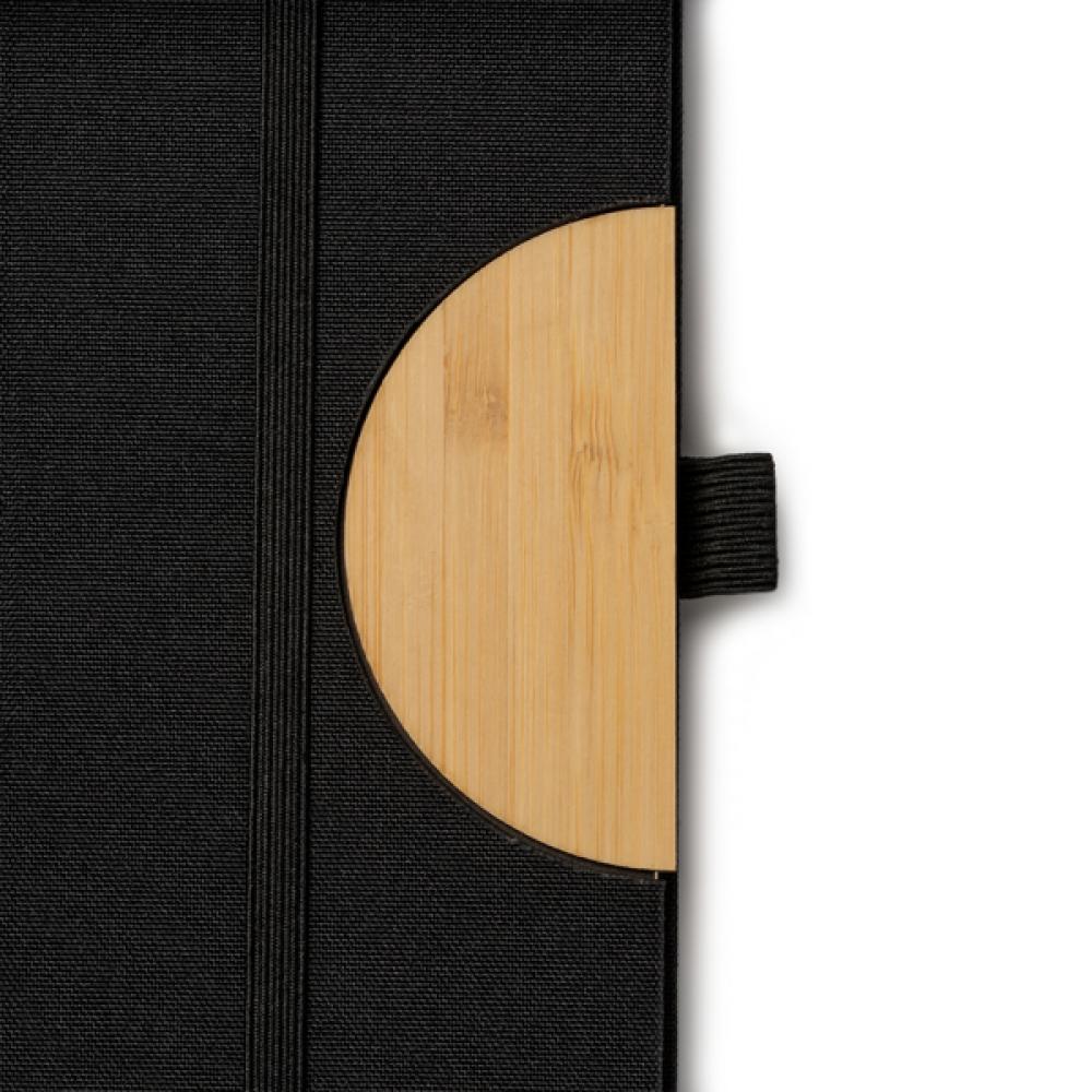 Блокнот формата A5. Жесткие обложки из RPET с функцией подставки. Резинка, закладка и держатель для ручки. 80 листов.