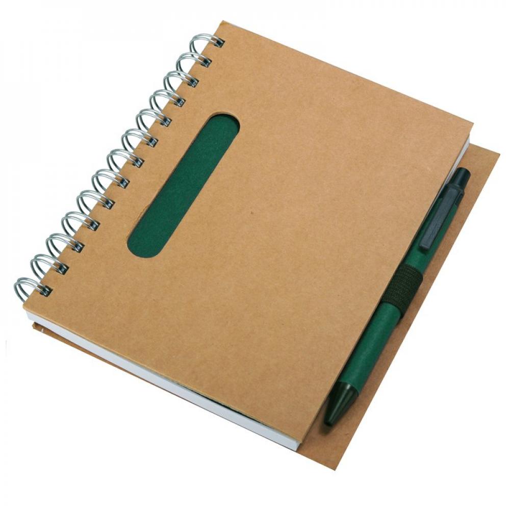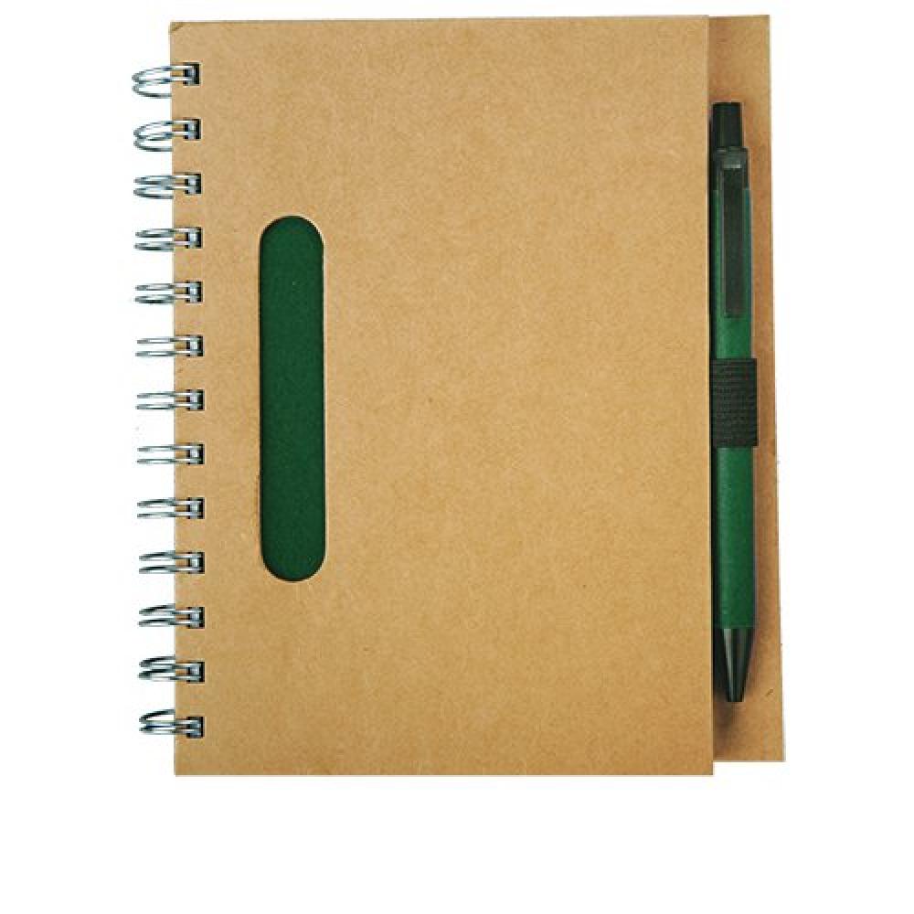 Эко-блокнот размером 70 страниц B6 на подкладке с картонной шариковой ручкой (синий стержень). Перерабатываемая бумага и детали из биоразлагаемого пластика. Возможна печать XL.