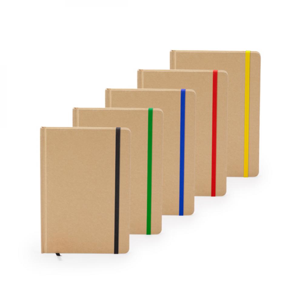 Блокнот формата А5. Жесткие обложки из переработанного картона. Закладка и цветная резинка. 100 листов.