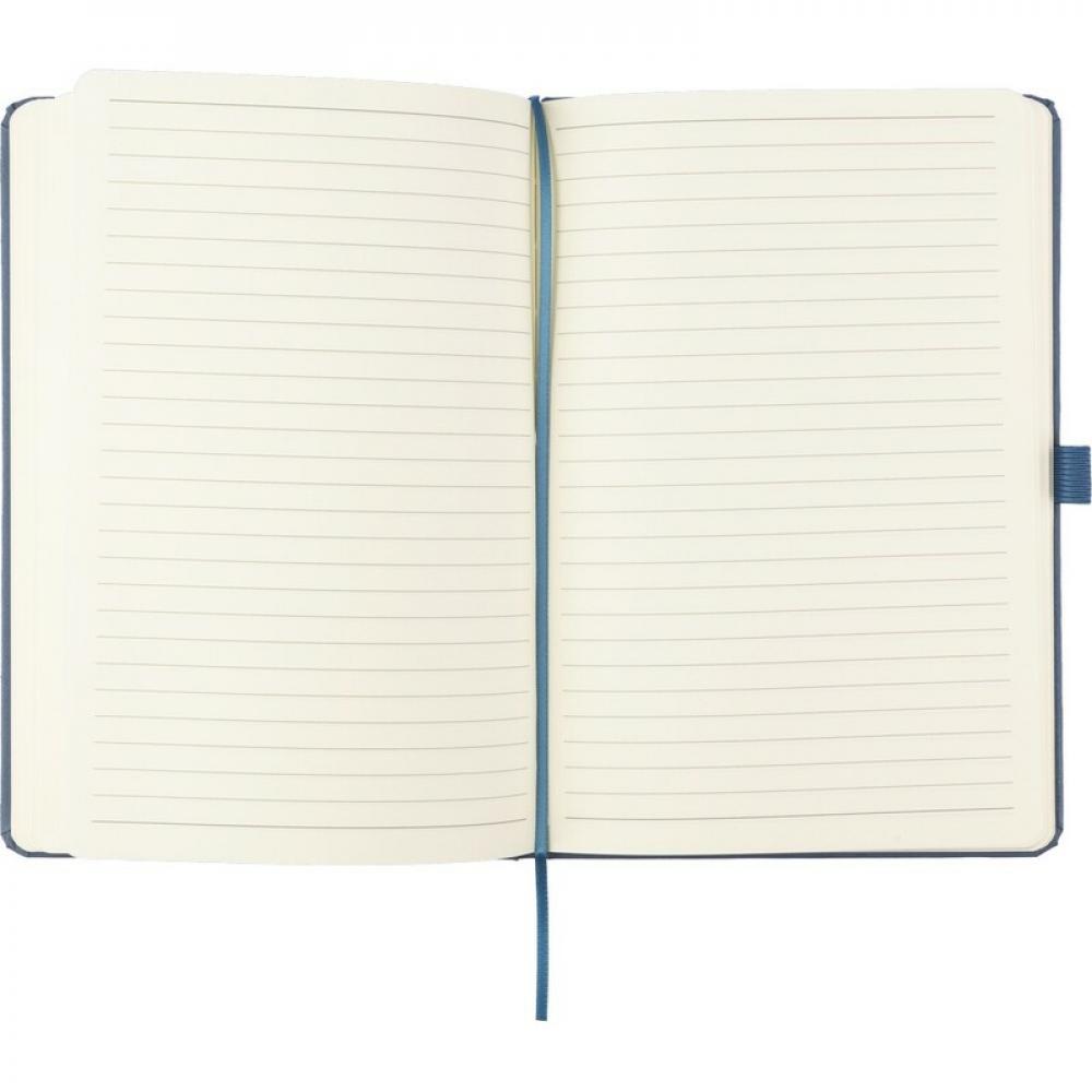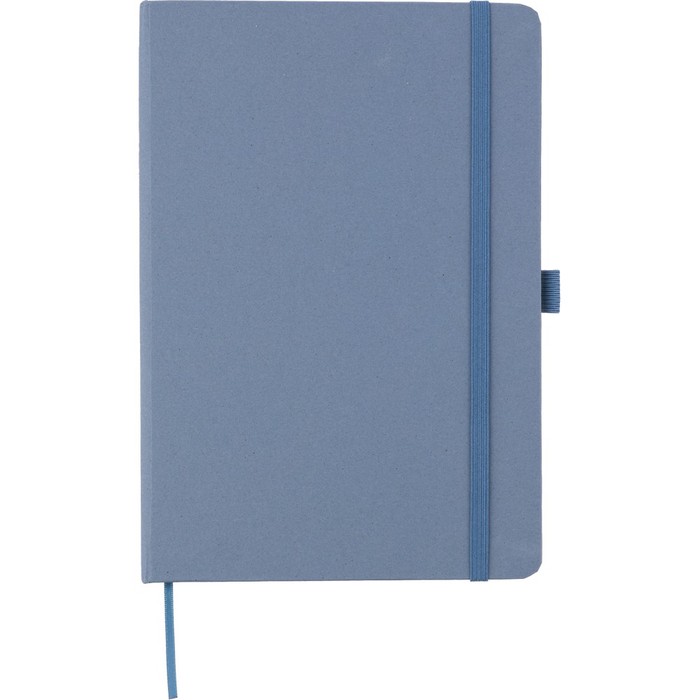 Блокнот примерно формата А5 с 80 линованными страницами, напечатанными соевой краской, лямкой-закладкой для удобного отмечания последней страницы или важных заметок, дополнительной резинкой для закрытия в подходящем цвете, помещается внутрь школьного рюкзака, обложка блокнота из Favini бумаги из Италии, на обороте вытиснут значок ресурсов, изделие изготовлено из картона, остатки производства (04 - лаванда, 05 - вишня, 06 - цитрус, 18 - миндаль, 25 - виноград) и бумага 70 г/м²