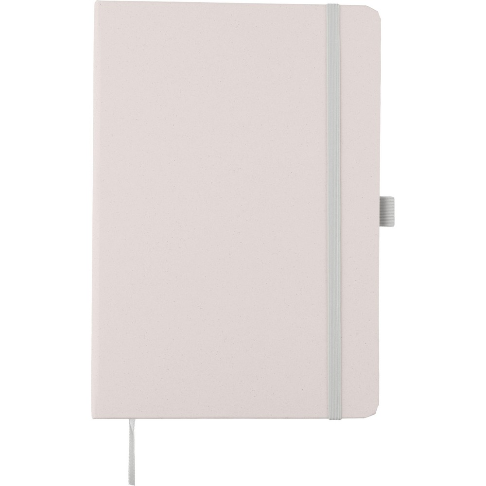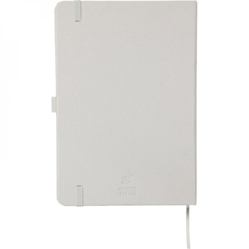 Блокнот примерно формата А5 с 80 линованными страницами, напечатанными соевой краской, лямкой-закладкой для удобного отмечания последней страницы или важных заметок, дополнительной резинкой для закрытия в подходящем цвете, помещается внутрь школьного рюкзака, обложка блокнота из Favini бумаги из Италии, на обороте вытиснут значок ресурсов, изделие изготовлено из картона, остатки производства (04 - лаванда, 05 - вишня, 06 - цитрус, 18 - миндаль, 25 - виноград) и бумага 70 г/м²