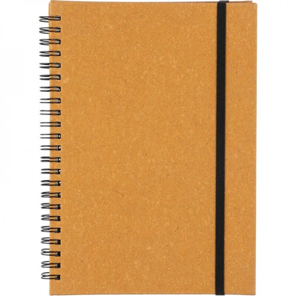 Блокнот примерно формата А5 с 80 линейными страницами, мягкая обложка, лямка-закладка для удобного отмечания последней страницы или важных заметок, помещается в школьный рюкзак, изделие из переработанной кожи.