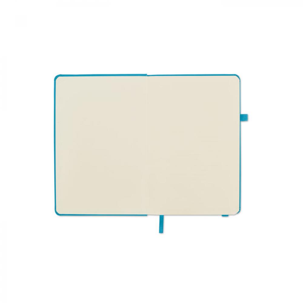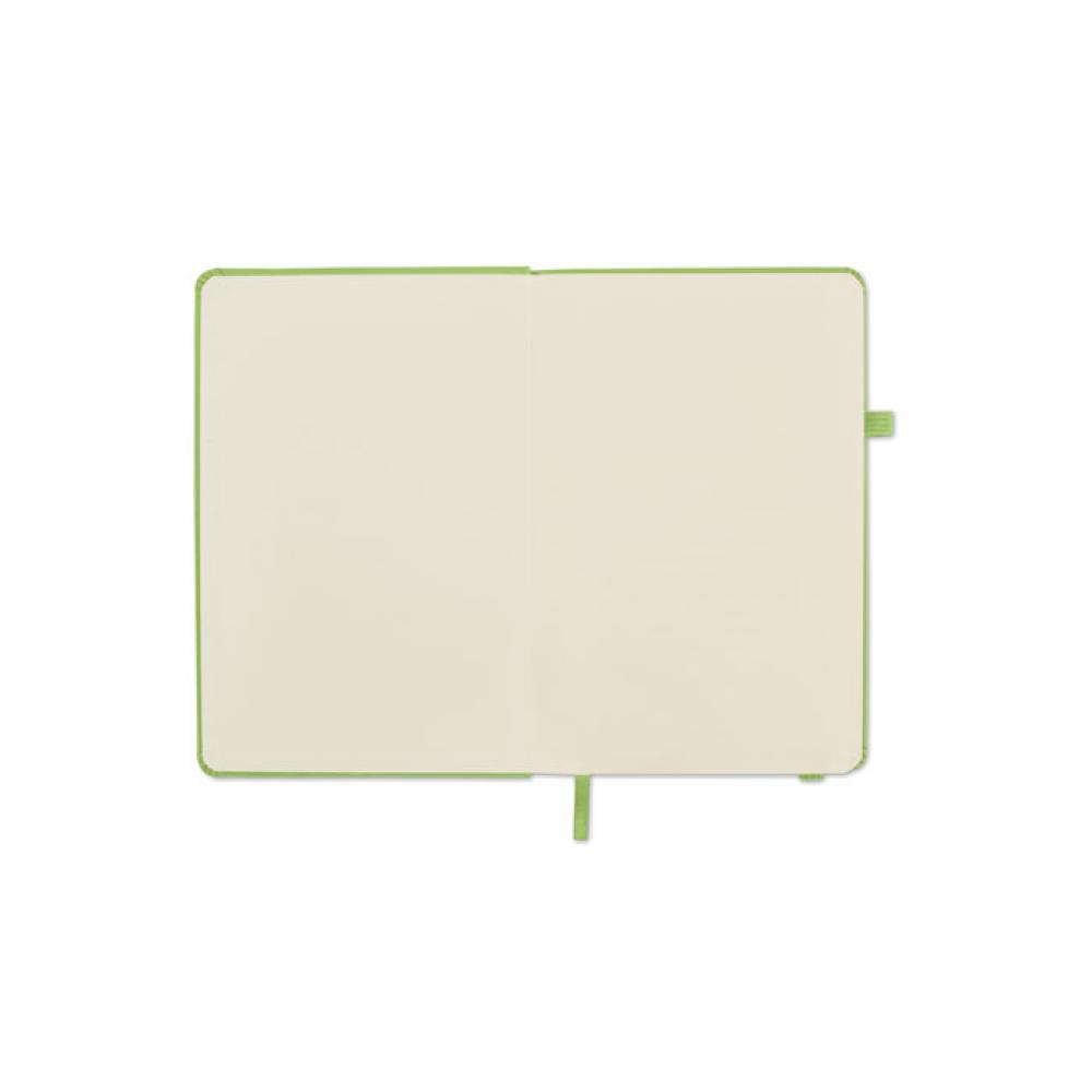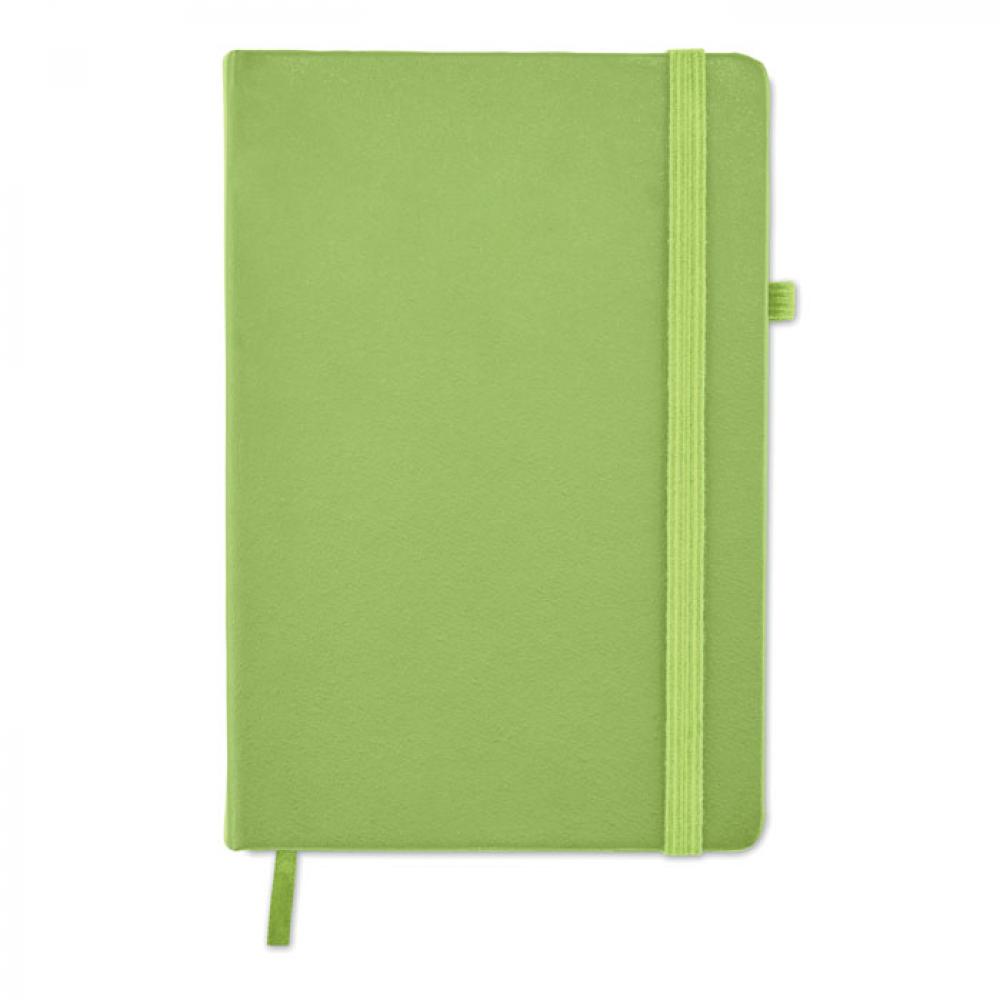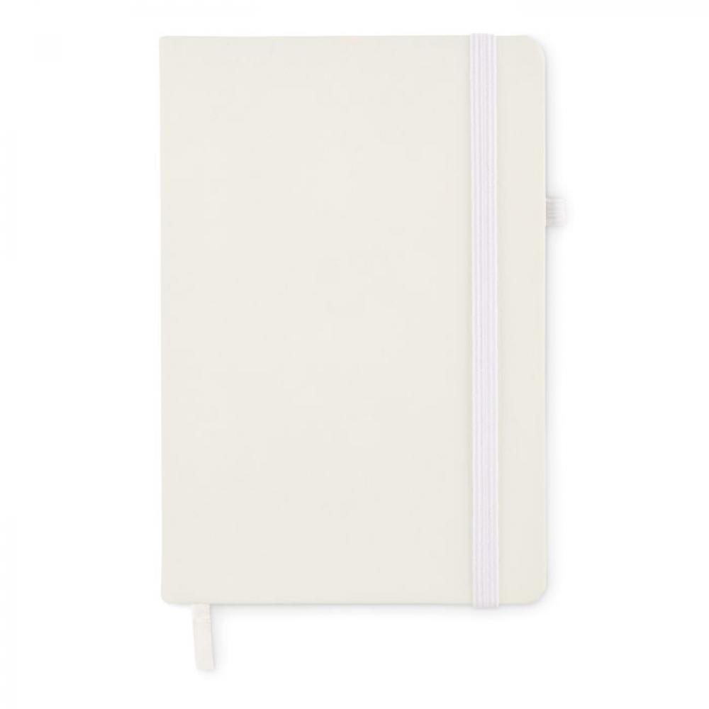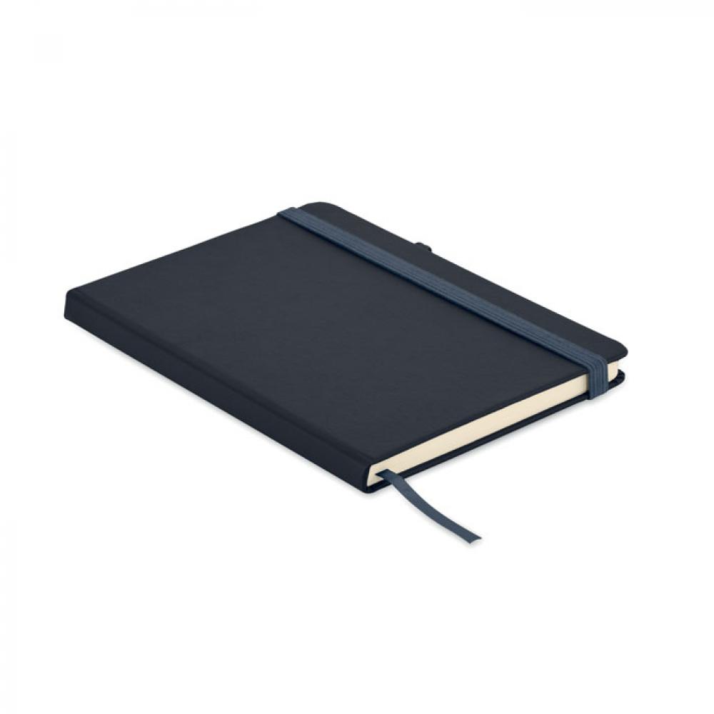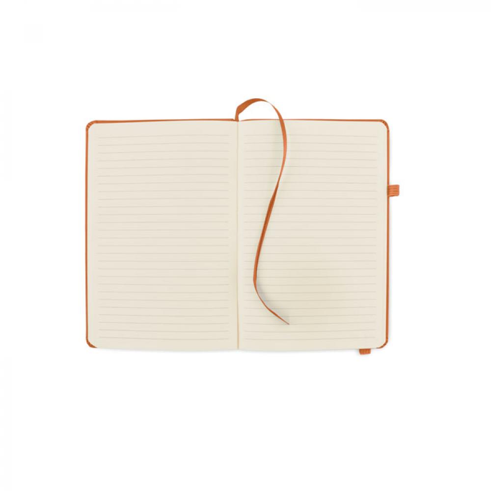 Блокнот формата A5 с обложкой из переработанного полиуретана. Переплет. 192 линованные страницы из переработанной бумаги (96 листов). Эластичный ремешок и крепление для маркеров и ручек.