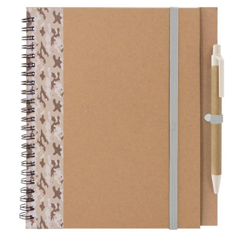 Набор блокното с подходящей ручкой, изготовленных из переработанного картона и выполненных в различных видах камуфляжа. Доступны в форматах A5 (10402) и A6 (10400). Содержат 60 белых чистых листов.