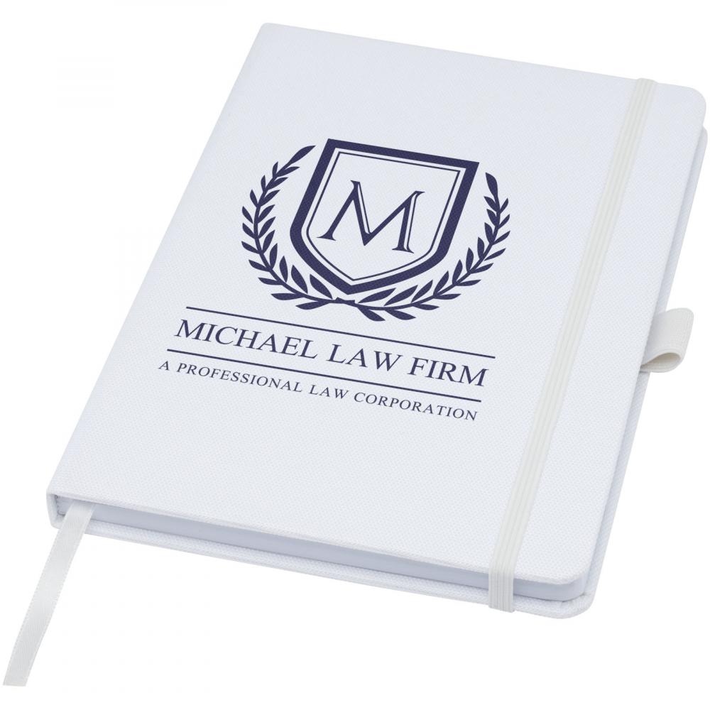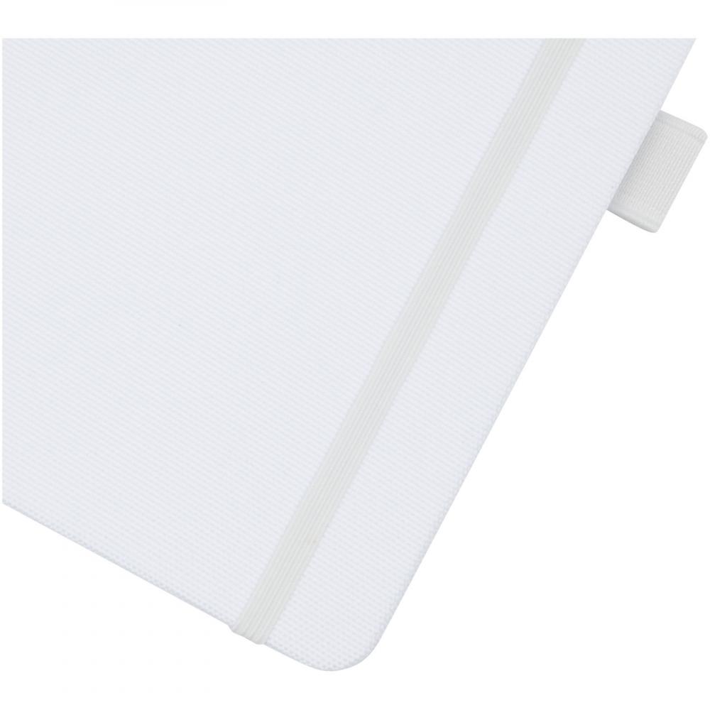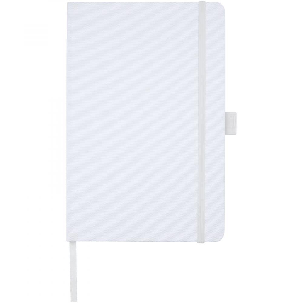 Блокнот формата A5 с обложкой из ткани RPET. Содержит 80 листов бумаги плотностью 70 г/м2 с линованной разметкой, петлю для ручки и закладку-ленточку. Может быть дополнен шариковой ручкой Honua RPET (артикул 107757).