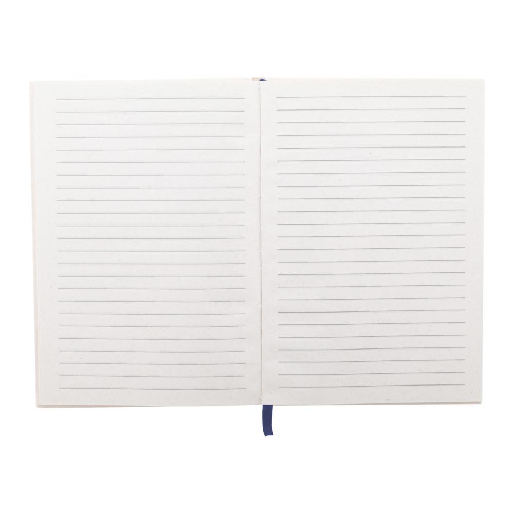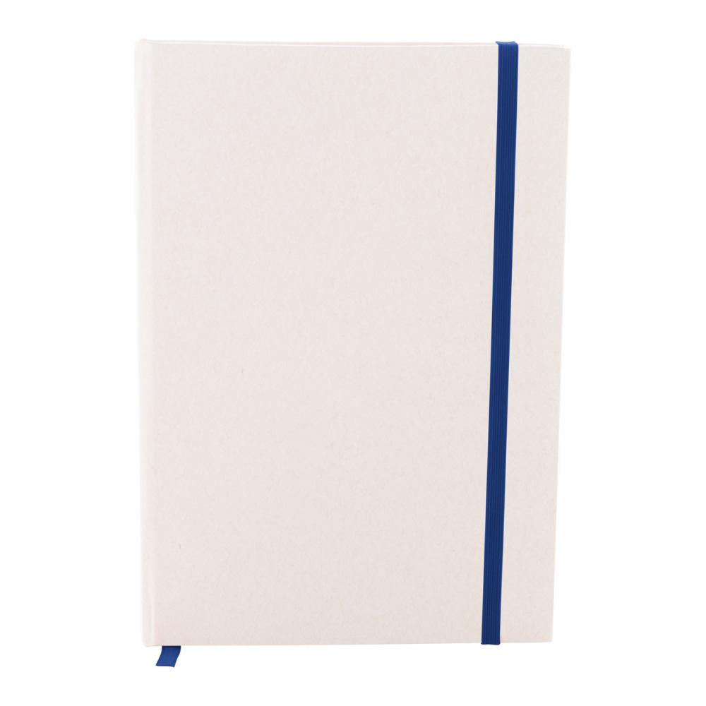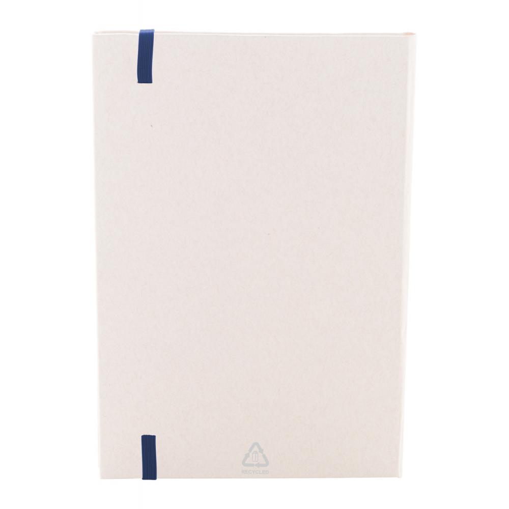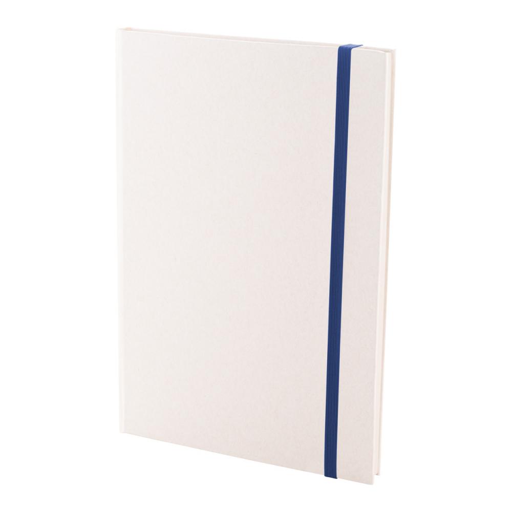 Блокнот из переработанной бумаги из молочных пакетов с твердой обложкой и 80 линованными листами. С резинкой и держателем для ручки в подходящем цвете. Размер A5.