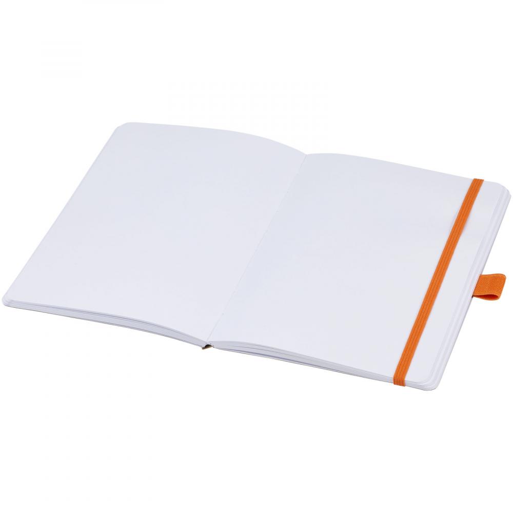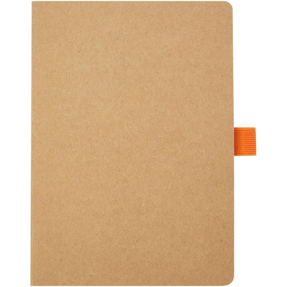 Блокнот из переработанной бумаги (70 г/м²) на 80 листов с закругленными углами, цветной эластичной лентой и петлей для ручки, соответствующей цветам ручек модели 107384.
