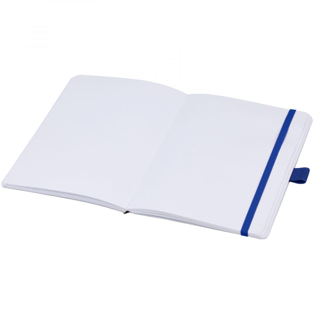 Блокнот из переработанной бумаги (70 г/м²) на 80 листов с закругленными углами, цветной эластичной лентой и петлей для ручки, соответствующей цветам ручек модели 107384.