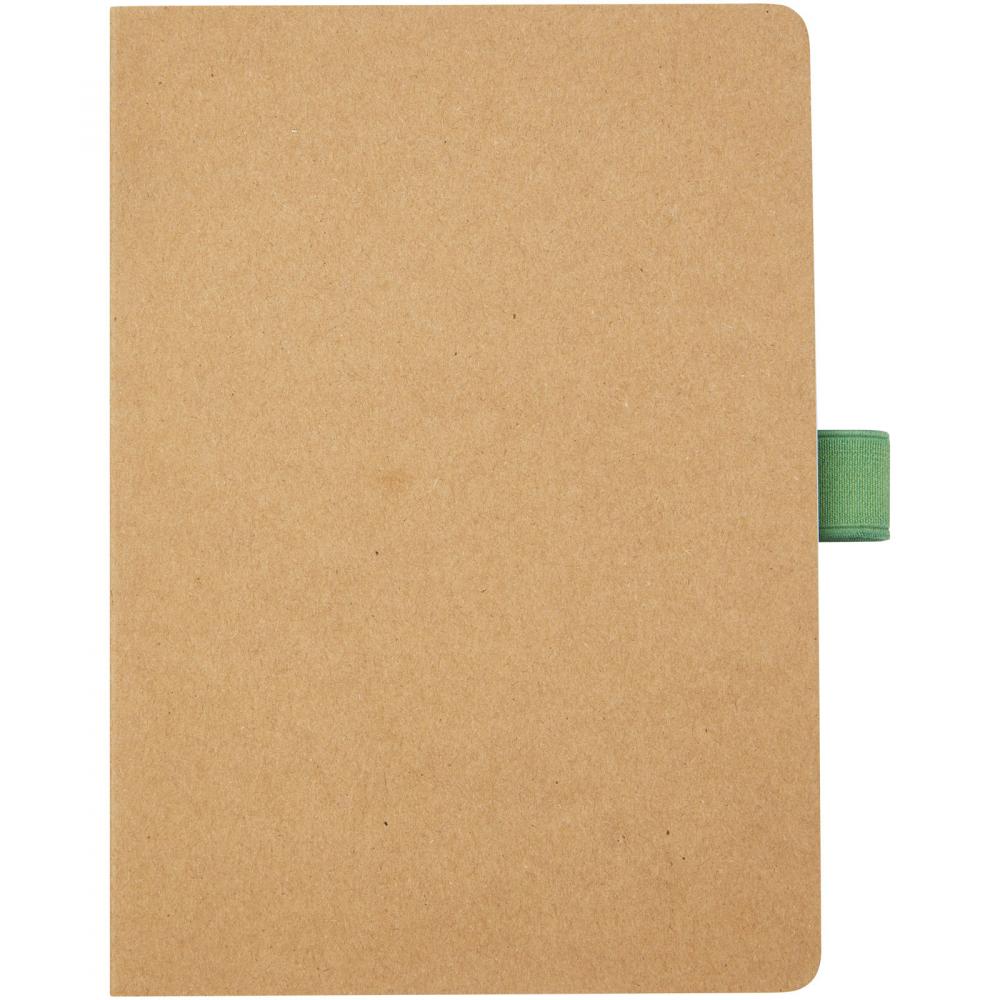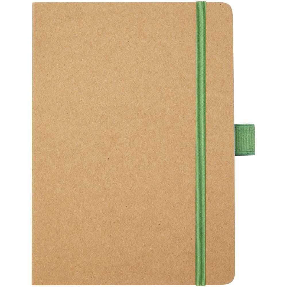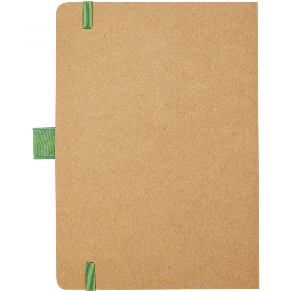 Блокнот из переработанной бумаги (70 г/м²) на 80 листов с закругленными углами, цветной эластичной лентой и петлей для ручки, соответствующей цветам ручек модели 107384.