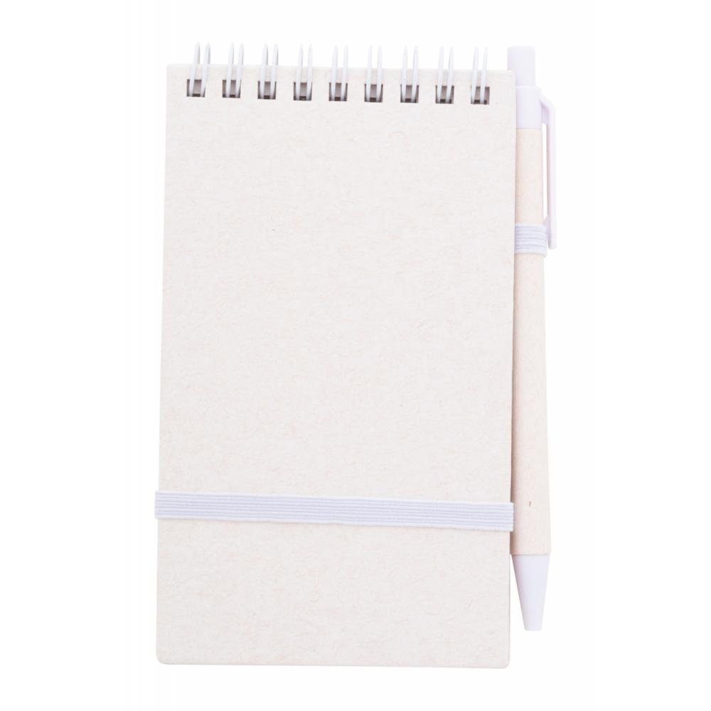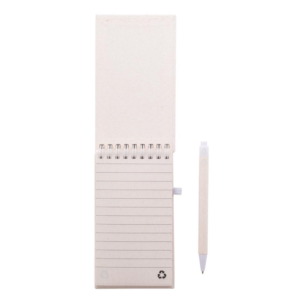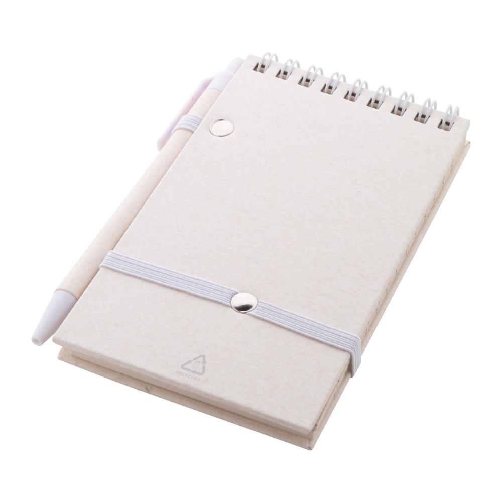 Блокнот на спирали из переработанной бумаги из молочных картонов с твердой обложкой и 70 линованными листами. Со спиралью в подходящем цвете, резиновым ремешком и держателем для ручки. В комплекте переработанная бумага из молочных картонов и переработанный пластик ABS для шариковой ручки с синим стержнем. Размер A6.