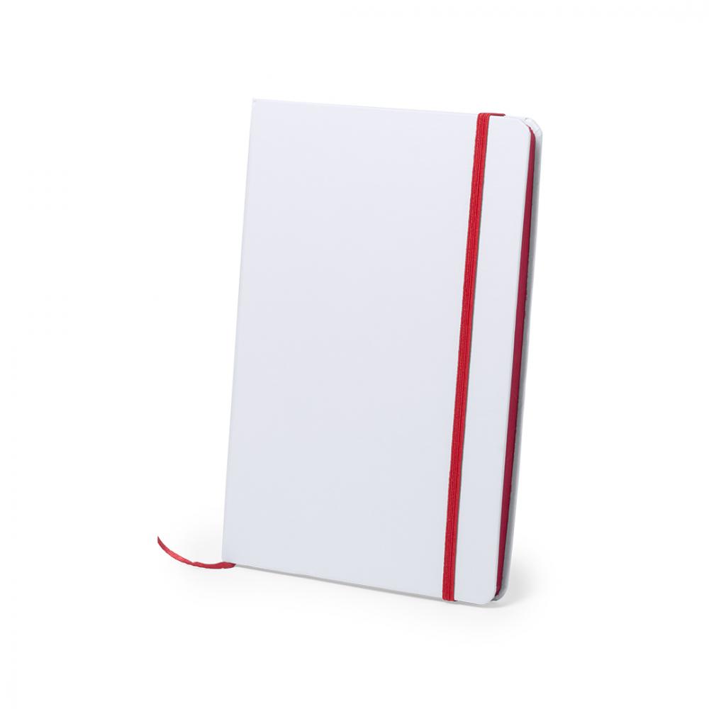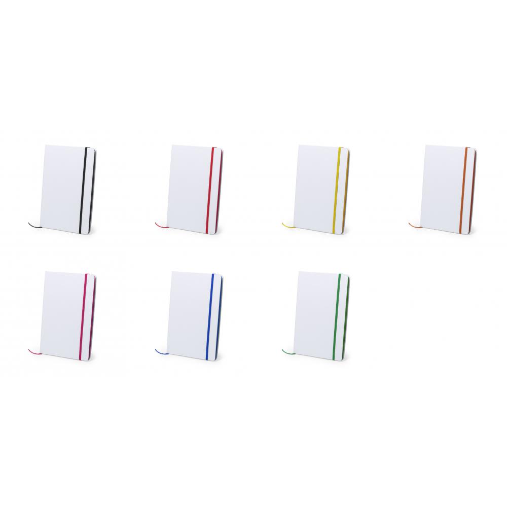 Блокнот с жесткой белой обложкой, приятной на ощупь. 100 однотонных листов с бортиками веселых цветов, резинкой и тканевой закладкой соответствующего цвета.
