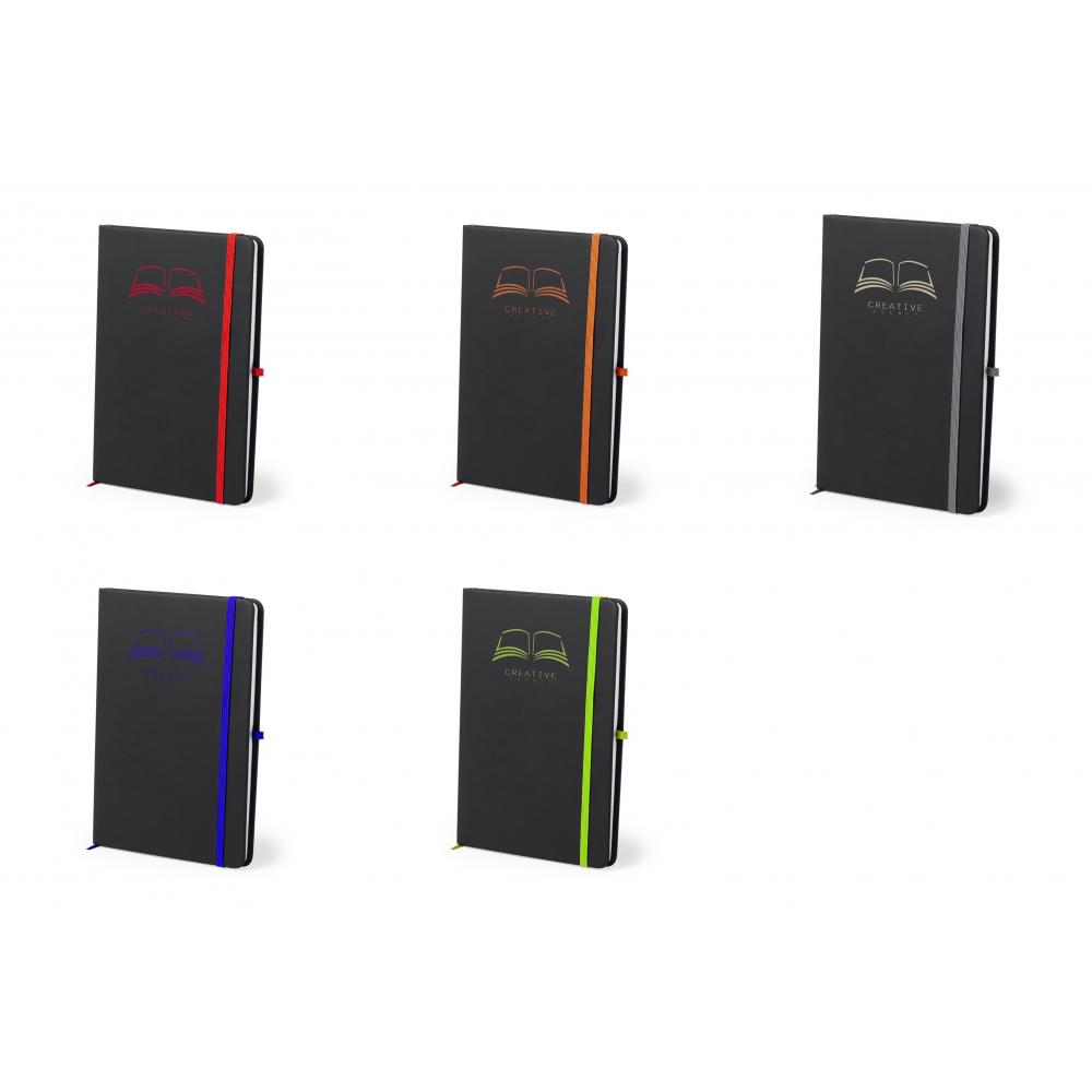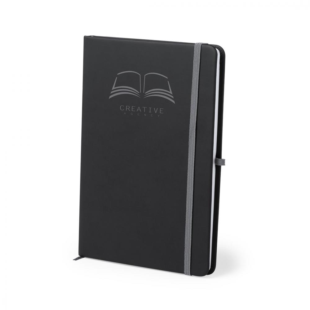 Блокнот с мягкими на ощупь обложками из искусственной кожи. В элегантном дизайне черного цвета, с эластичной застежкой, закладкой и эластичным держателем для шариковой ручки ярких цветов. Поверхность чехлов специально разработана для лазерной печати: при гравировке логотипа отображается цвет изделия. Включая 100 листов с полосатой разметкой. Твердая обложка. 100 Листов пу