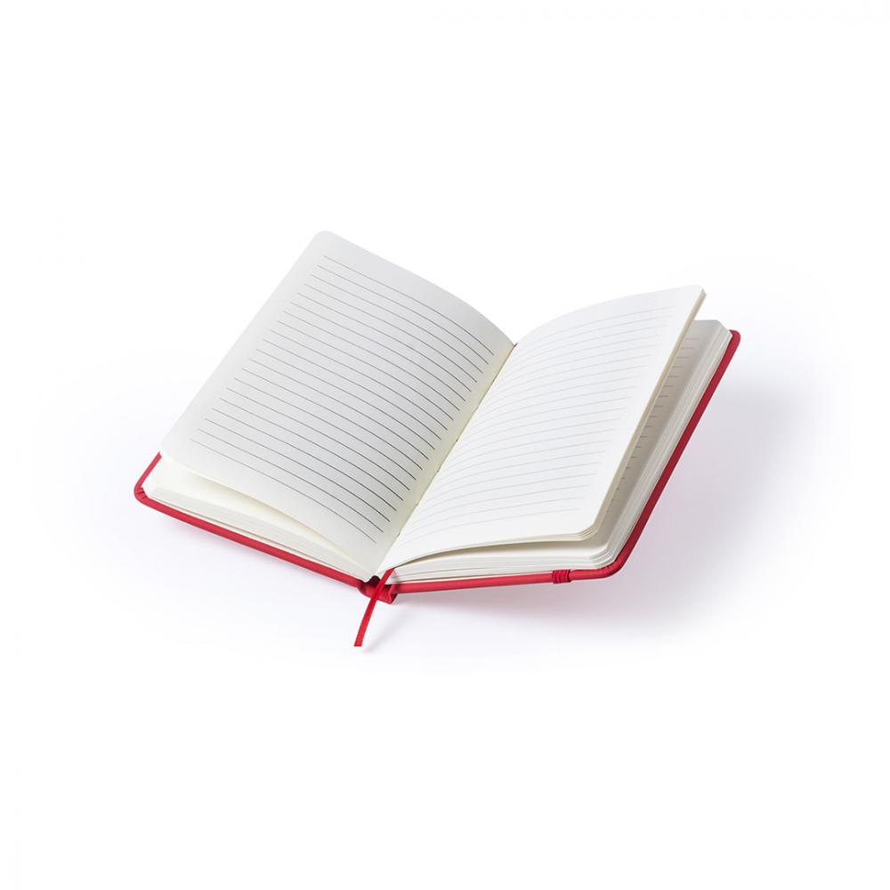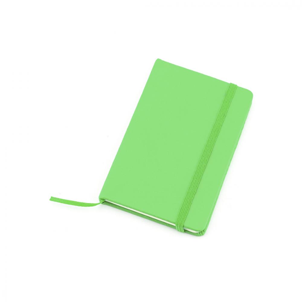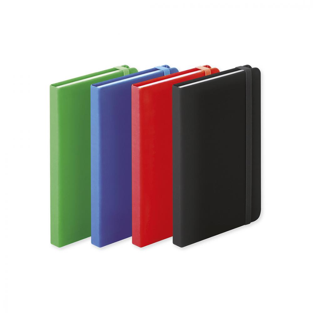 Блокнот с мягкими на ощупь обложками, из искусственной кожи и ярких цветов. 100 листов с полосатым оформлением, резинкой и закладкой из ткани соответствующего цвета. Твердая обложка. 100 Листов пу
