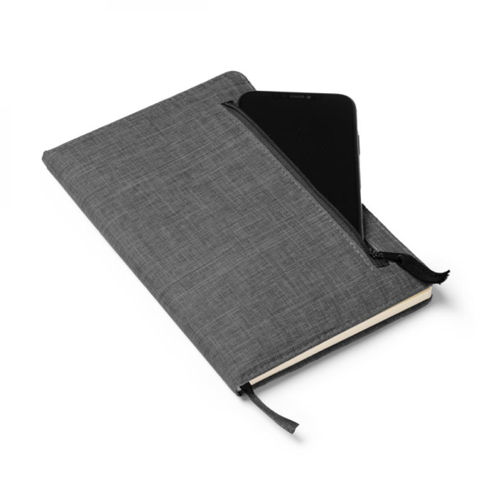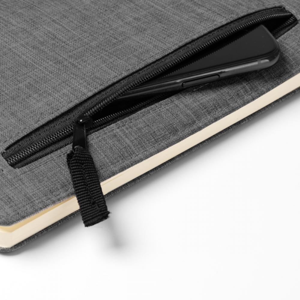 Блокнот формата A5 изготовлен из RPET. Внешний карман с застежкой на молнии. В комплекте закладка. 80 листов линейной бумаги.