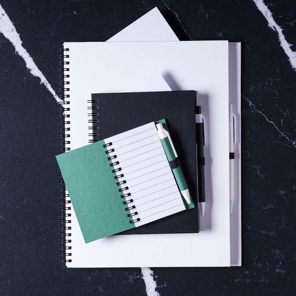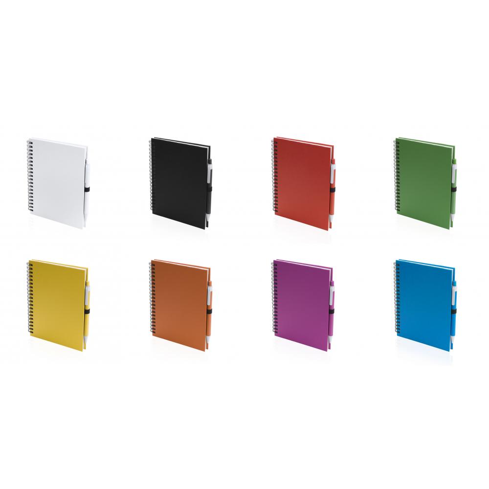 Особенности Кольцевой блокнот с мягкими на ощупь обложками из прочного переработанного картона и шариковой ручкой из переработанного картона соответствующего цвета. Яркие цвета, 70 чистых листов и держатель для ручки на задней обложке. Твердая обложка. 70 Листов. Ручка Из Переработанного Картона Входит в Комплект Поставки Переработанный Картон