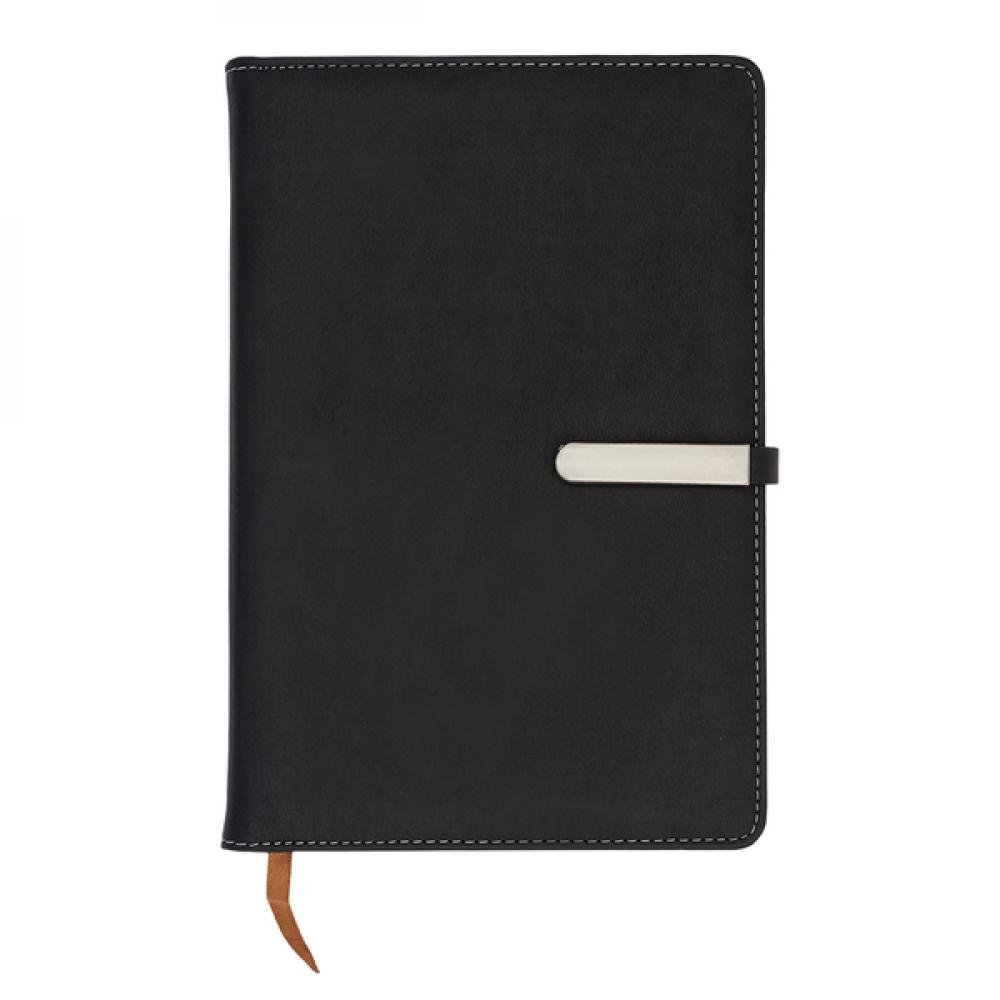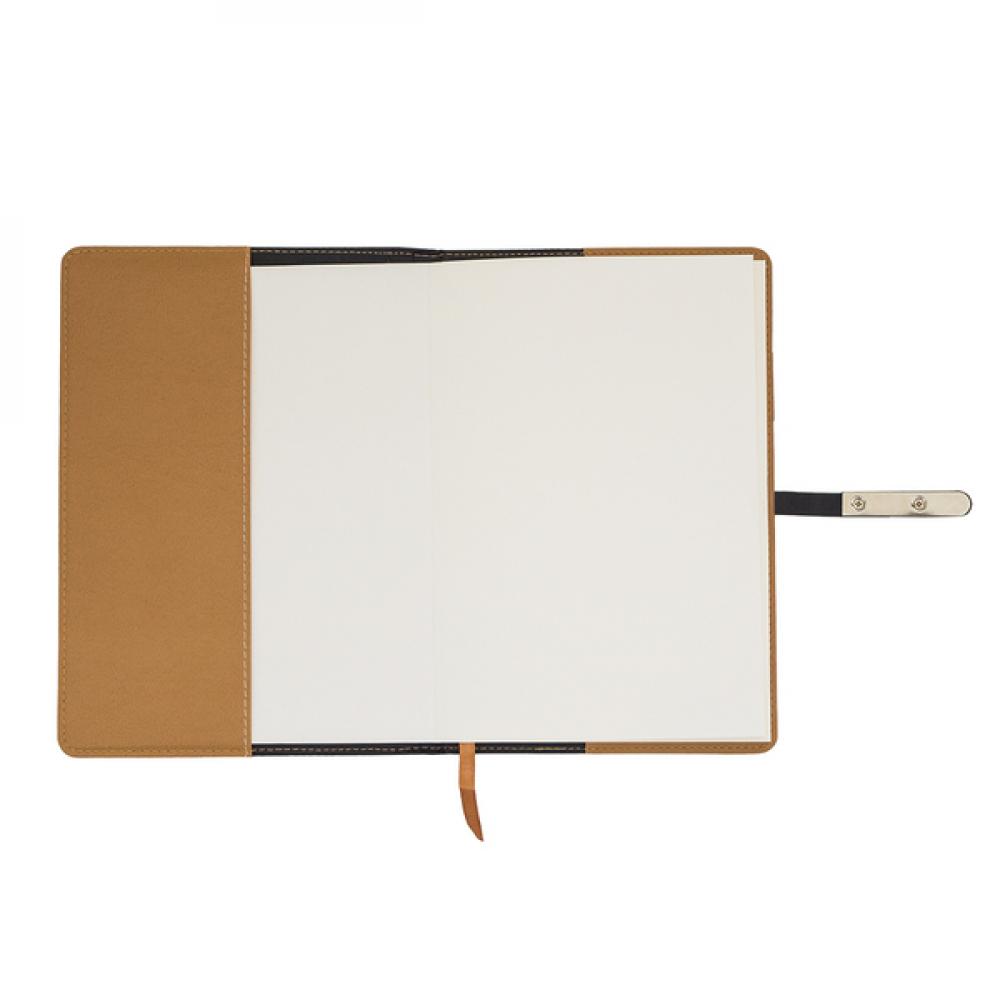 Блокнот в твердом переплете из искусственной кожи на 96 листов с линованной бумагой (бумага 80 г/м2). Закрывается на магнитную пряжку. Сменный блокнот (14x20,3 см).