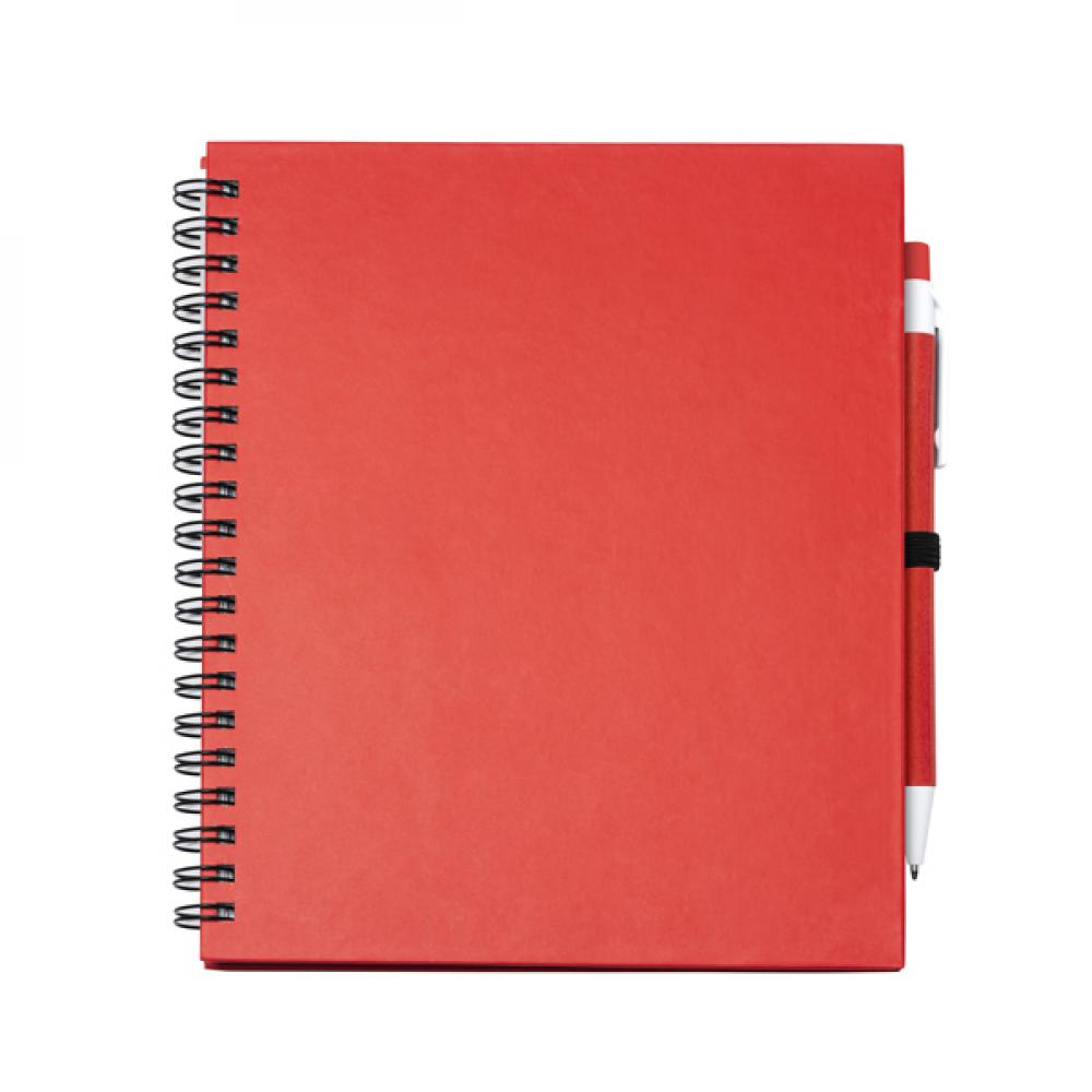 Спиральная тетрадь с обычными листами и держателем для ручки. Жесткие обложки и соответствующая переработанная картонная ручка. 70 листов.