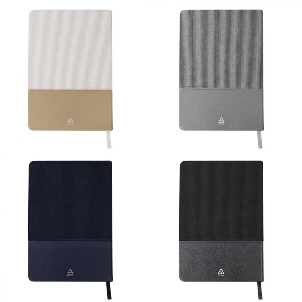 Блокнот формата А5 из мягкого полиэфирного вельвета и переработанного полиуретана. Он включает 80 листов кремового цвета с однополосным оформлением и соответствующей закладкой. Логотип Recycled PU на задней обложке. Твердая обложка. 80 листов