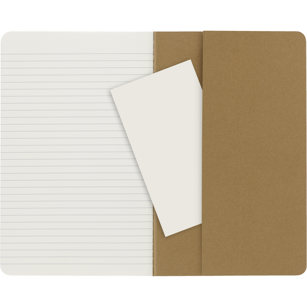 Журнал MOLESKINE Cahier (приблизительно формата А5, большой), 80 линованных страниц, мягкая обложка с видимой строчкой на спине, внутренний карман, последние 16 листов можно отрывать.