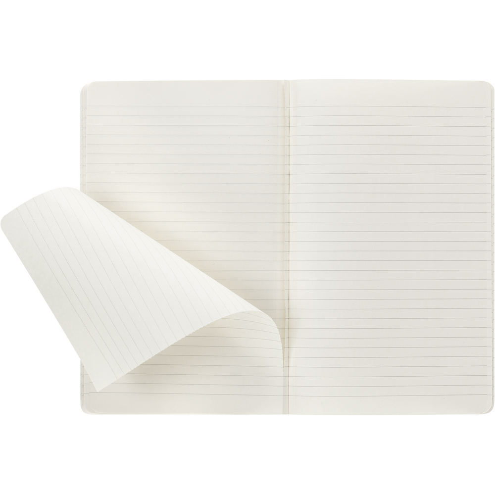 Журнал MOLESKINE Cahier (приблизительно формата А5, большой), 80 линованных страниц, мягкая обложка с видимой строчкой на спине, внутренний карман, последние 16 листов можно отрывать.