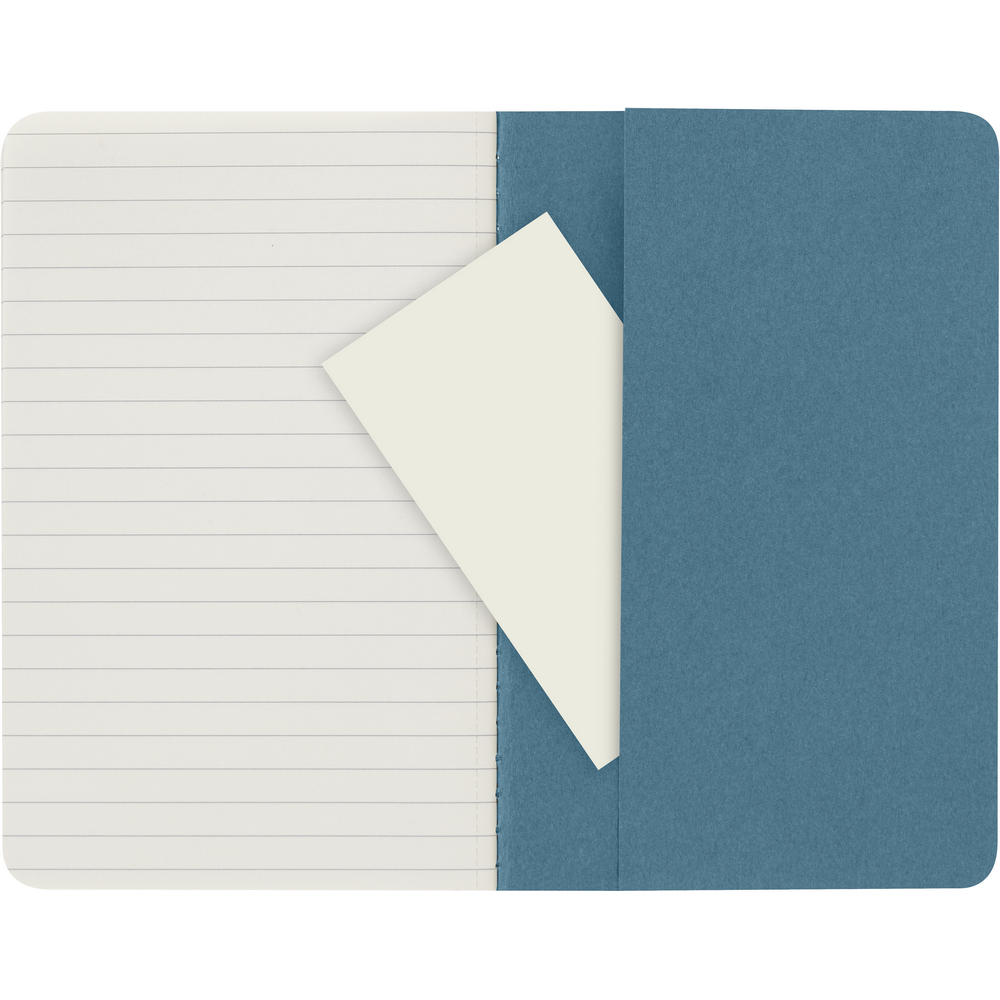 Журнал MOLESKINE Cahier (примерно формата А6, карманный), 64 линейные страницы, мягкая обложка с видимой строчкой на спине, внутренний карман, последние 16 листов можно отрывать.