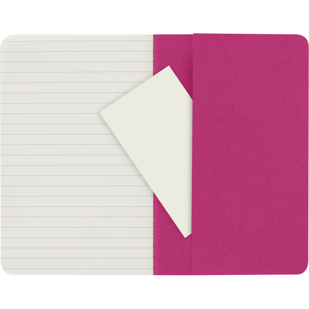 Журнал MOLESKINE Cahier (примерно формата А6, карманный), 64 линейные страницы, мягкая обложка с видимой строчкой на спине, внутренний карман, последние 16 листов можно отрывать.