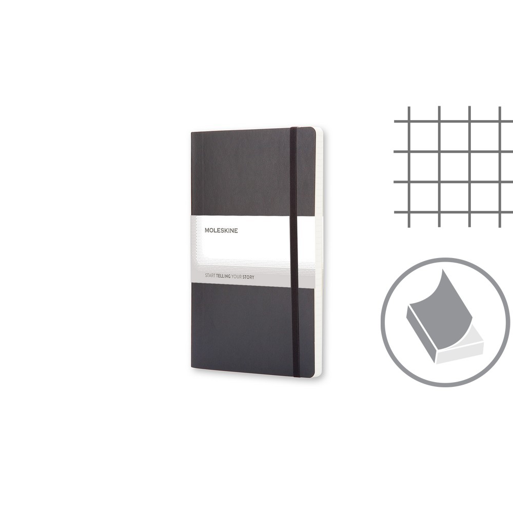 Блокнот Moleskine (прибл. A5, большой), 192 страницы в квадрате, мягкая обложка, внутренний карман, маркер для ленты и резинка для закрытия