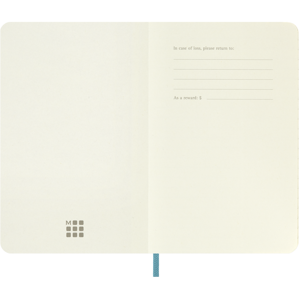 Блокнот MOLESKINE (приблизительно формата А6, карманный), 192 линейные страницы, мягкая обложка, внутренний карман, лямка-закладка и эластичная лента для закрытия.