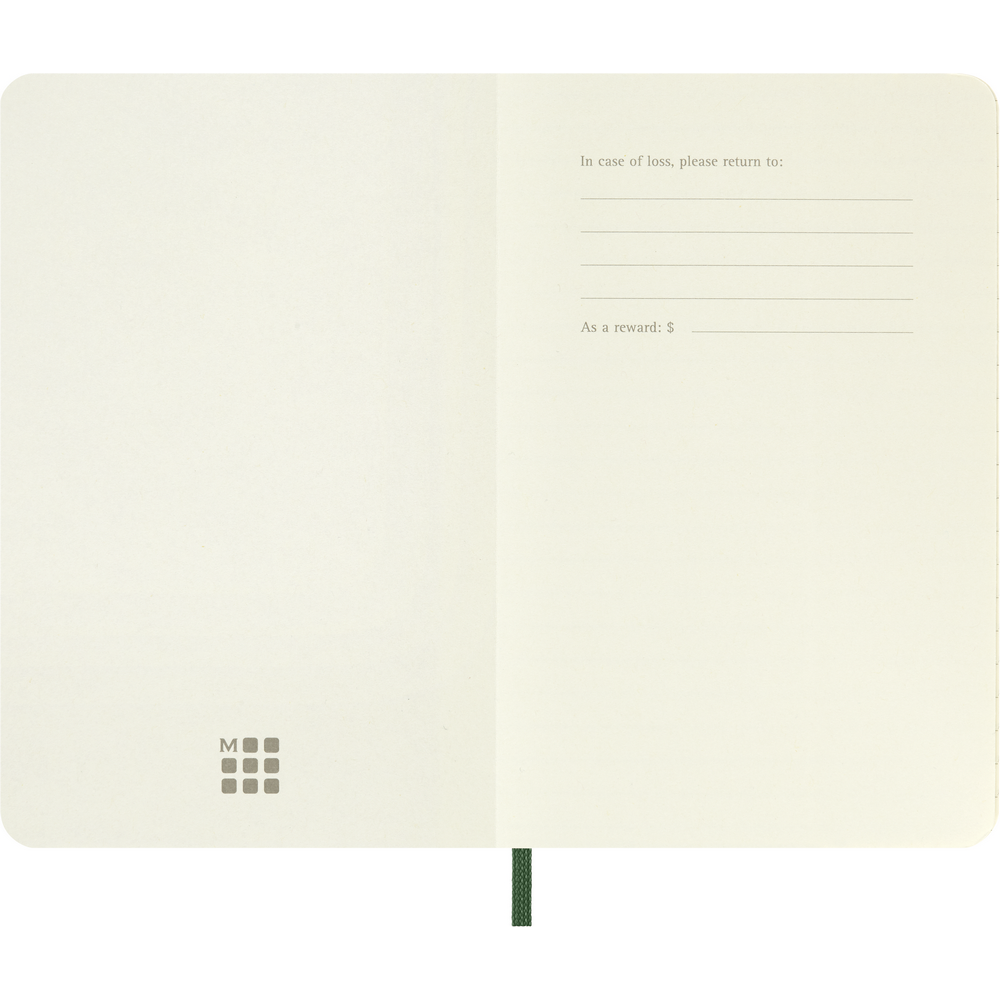 Блокнот MOLESKINE (приблизительно формата А6, карманный), 192 линейные страницы, мягкая обложка, внутренний карман, лямка-закладка и эластичная лента для закрытия.