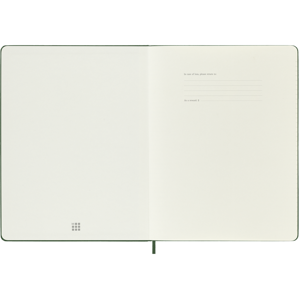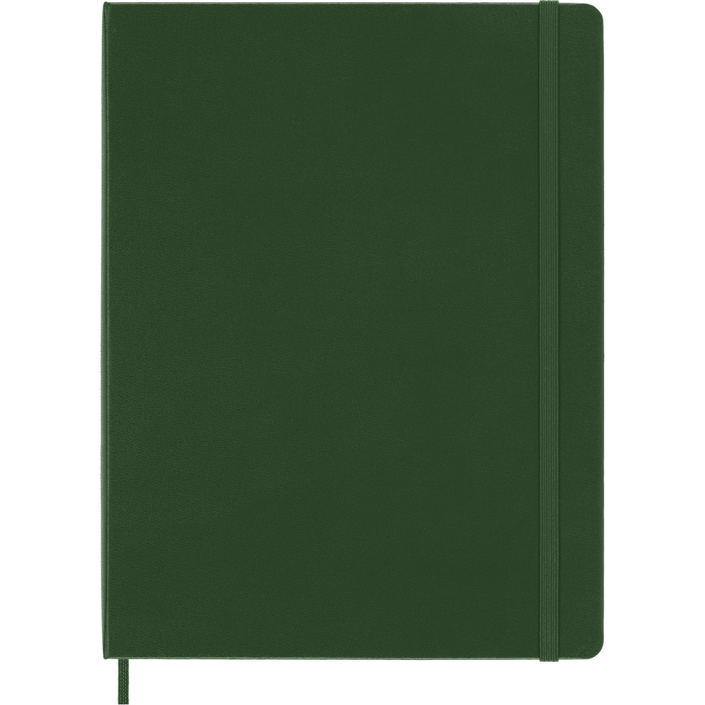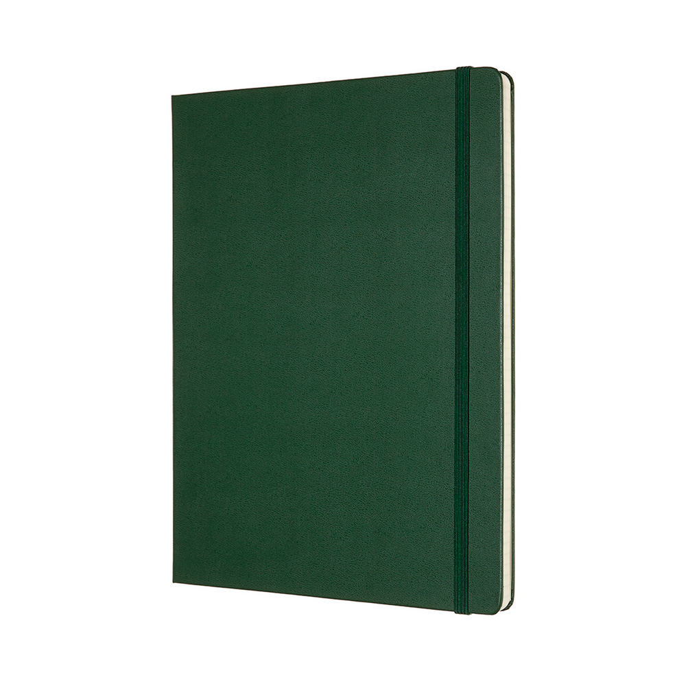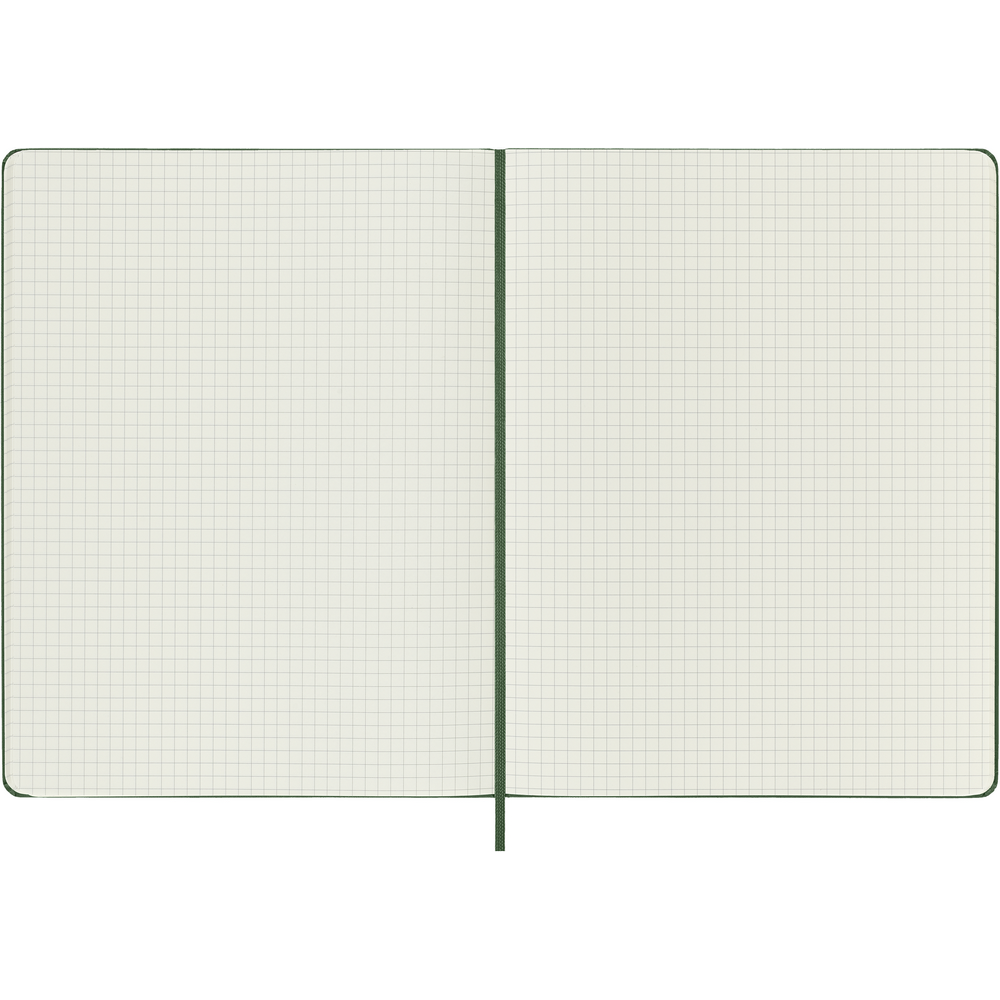 Блокнот MOLESKINE XL (примерно формата B5), 192 страницы в клетку, твердая обложка, внутренний карман, лямка-закладка и резинка для закрытия.