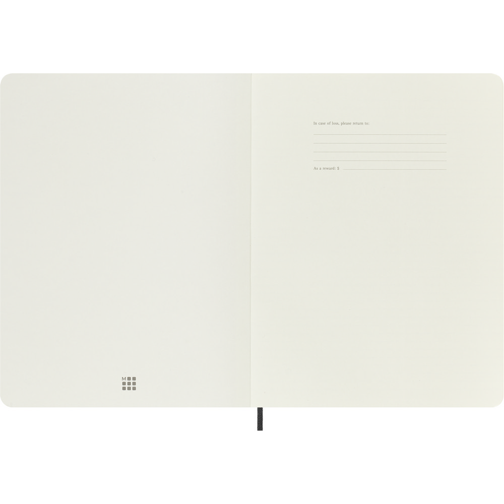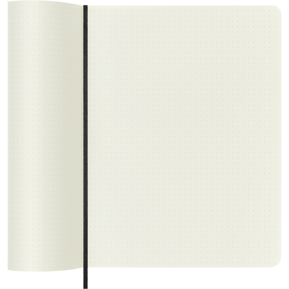 Блокнот MOLESKINE XL (примерно формата B5), мягкая обложка, 192 страницы в точечную линейку, внутренний карман, лямка-закладка и эластичная резинка для закрытия.