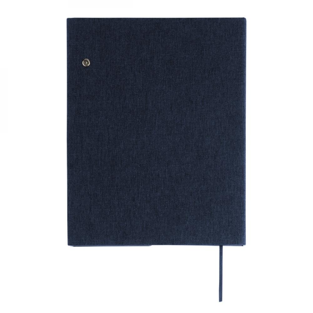 Элегантный блокнот с линованными страницами (80 листов 70 гсм) в твердом переплете из ткани RPET, украшенный бамбуковым элементом. В нем есть держатель для ручек. Закрывается на магнитную застежку.