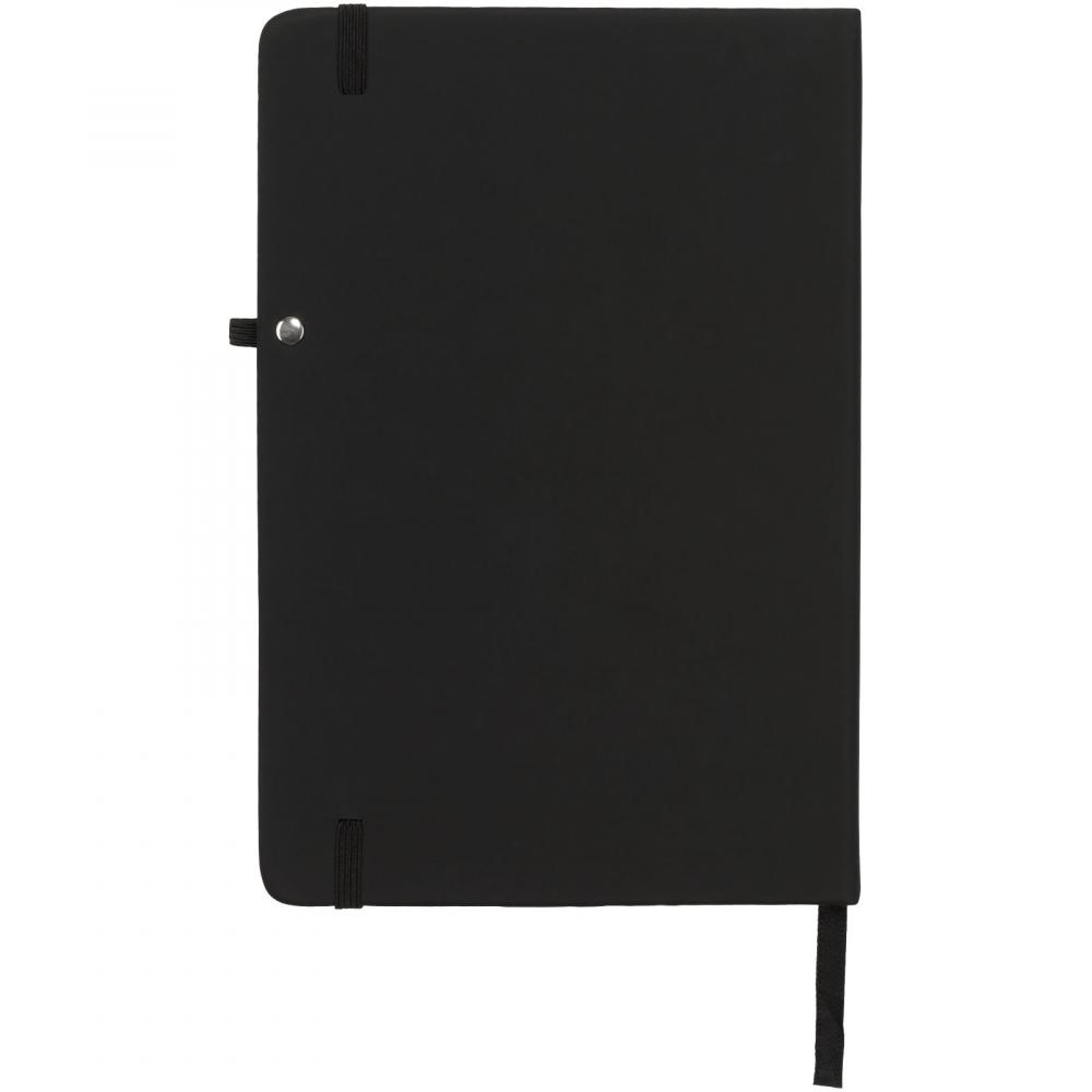 Блокнот Noir имеет мягкую на ощупь обложку из черного полиуретана, что придает ему тактильный эффект. Каждый блокнот оснащен цветной застежкой, петлей для ручки и закладкой-ленточкой. Внутри содержится 96 листов (70 г/м2) кремовой линованной бумаги.